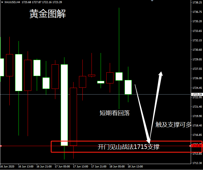 舒亦梵:6.16黄金为何先跌后涨多空来回扫损!早盘黄金原油走势策略 有很多人总在抱怨市场的残酷与冷血,却往往忽略了自己到底哪里做的不够完善,想玩转市场,摆布市场行情的,最终只会被市场玩弄与摆布!仁者见仁智者见智,只看结果的永远不懂交易,亏亏赚赚谁都有,没有圣人更没有神。关键还是自己对市场的认知有多少,对交易理念的认知是什么,对交易模式的完善到不到位。交易可以被止损,但不可以胡乱操作。成王败寇的前提也是正确的去看待且理解交易!好了,下面来讲解下黄金,原油后市的行情! 黄金趋势答疑解惑:金融市场发生了什么?黄金为何暴跌暴涨? 周一(6月15日),黄金波动相对较大;亚洲盘1735区域直接遇阻在下破