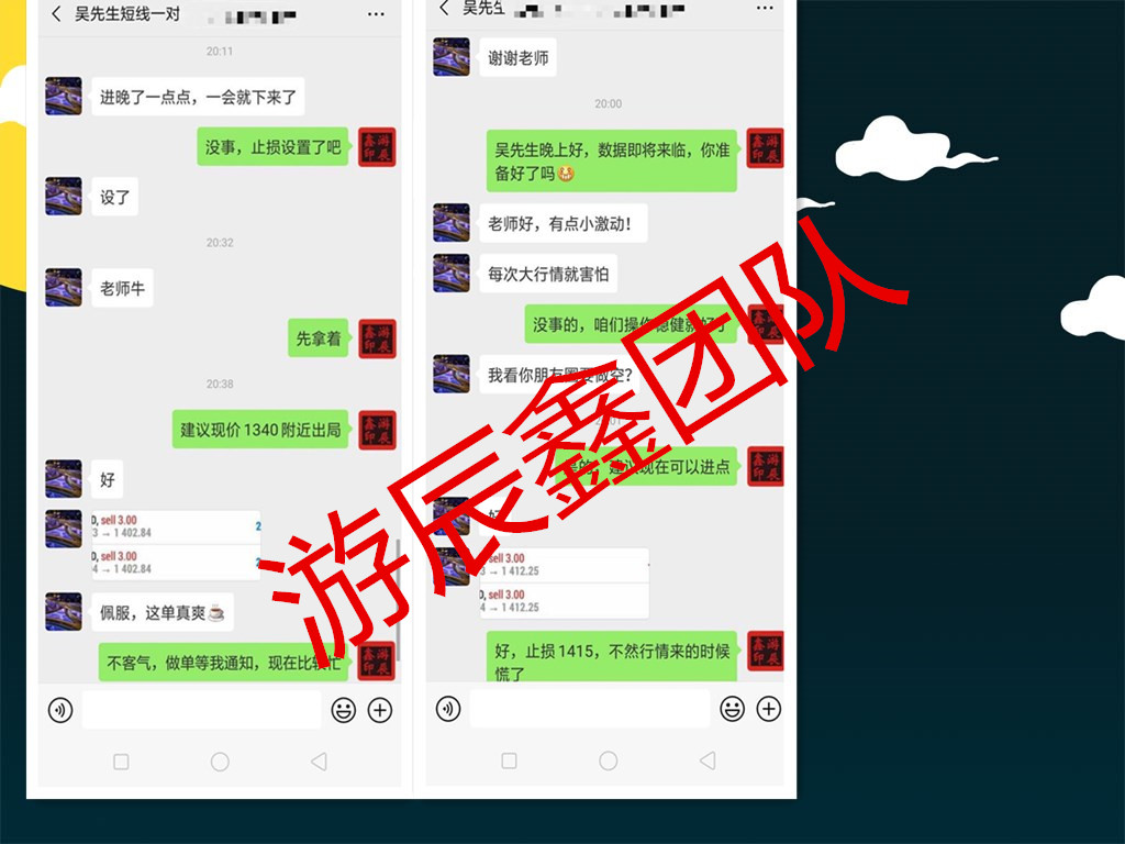 交易注重心态,技术是根本。我们在交易过程中根据行情的分析来进行操作,盲目进场肯定是亏多赚少的。;别人再风光,你指望不上,眼前再狼藉,不得不继续!没人扶你的时候,要自己站直,没人帮你的时候,要自己努力。相信自己,只要你足够勇敢,没有熬不过的艰难。 投资失败无非两点:一是自身原因,自己没有经验,盲目的操作肯定会造成亏损;二是指导老师的实力问题,指导老师对行情的方向把握不准,经常喊反弹,造成你的亏损。投资如行军打仗是需要有一位军师助你操控大局的,我的每一笔交易都是从实盘操作的角度出发,都要考虑到实盘跟随的可行性,不要看到统计的数字多么的漂亮,而是要看实际账户的最终盈利。游辰鑫每天会更新走势分析和操
