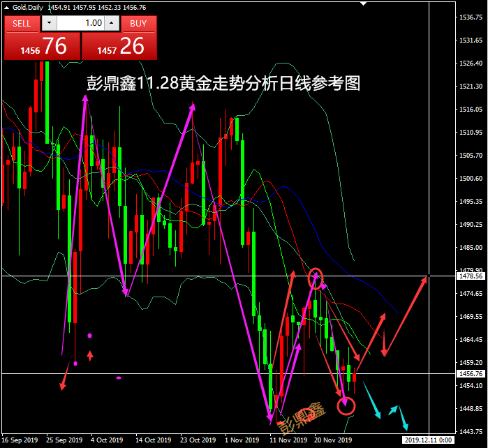 鼎鑫前沿: 人总是历经的多了才越发沉静,看遍世间咸淡,反而就释然了,人生说来漫长,但包含的东西很多。事业是人生的一部分,投资是事业的一部分,成败是投资的一部分,行情的涨跌也是你做单的一部分。操作黄金,机会很多,陷阱也很多,说来说去,无非是一个心态,稳;一个技术,精;一个操作系统,全。鼎鑫金师在此职谋其事,听过看过太多亏损的悲惨故事,这个市场是无情的,没有人能在大雨来时不被淋湿,那么我们的存在,就是在风雨里给你一把伞,送你回家。 国际黄金消息面: 周三(11月27日)亚洲时段,美元指数交投于六周高位,有迹象表明贸易乐观,亚洲股市整体也有所走高。周四的感恩节假期之前,大多数主要货币交投清淡。由于