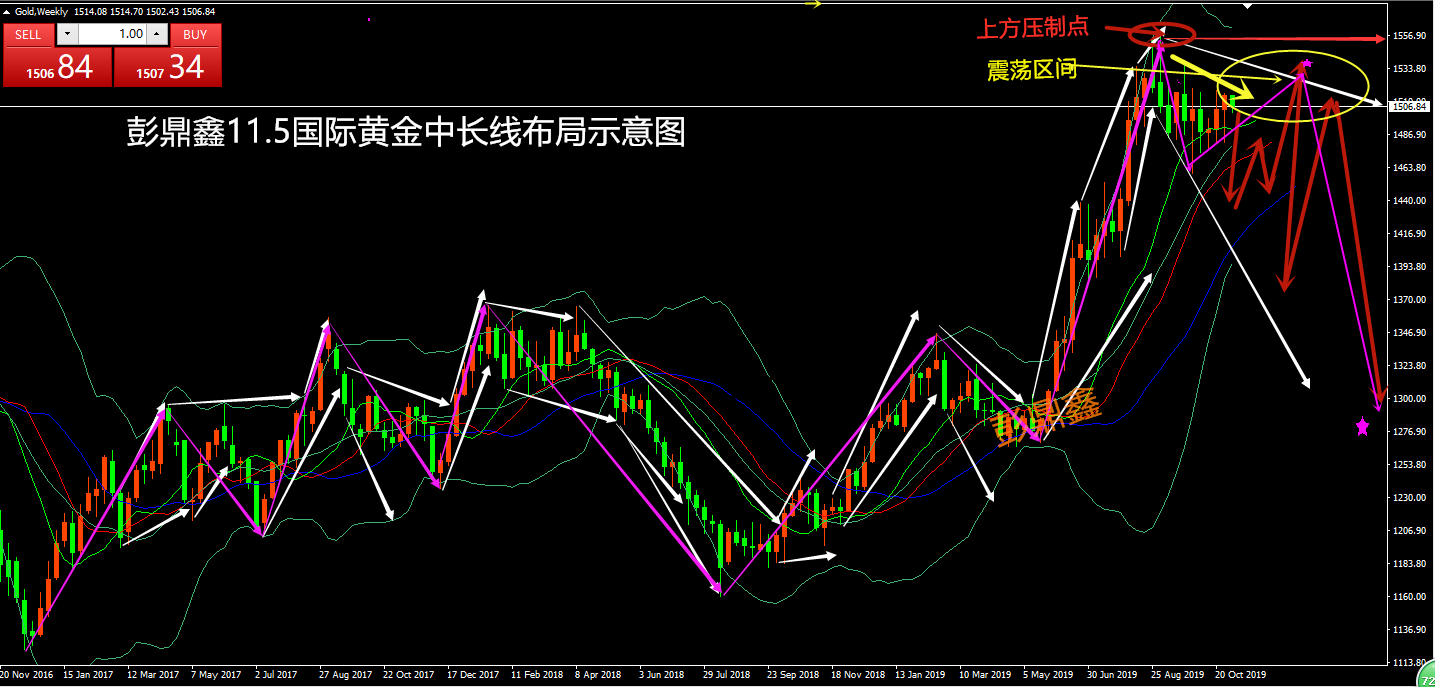 鼎鑫摘要: 人生中,你做的每一个决定都很重要,因为它关系着你的成败;在投资中,你所做的每一个选择都很重要,因为它关系着你的盈亏;看一个人品行好坏,从他结交的朋友可以得知,看一个人在投资中的成败,从他选择的老师可以判断,和什么样的人在一起,就会有什么样的人生。人都是随着周边环境影响而发生着变化,和勤奋的人在一起,你不会懒惰;和积极的人在一起,你不会消沉;与智者同行,你会不同凡响;与高人为伍,你能登上巅峰。你是选择于神者携手,还是和愚者同行? 国际黄金行情走势分析 周线来看:随着实体大阴的拉下,金价已经有效下穿短期均线和布林中轨,且带动短期均线分别于1493和1497向下延伸,布林中轨也于147