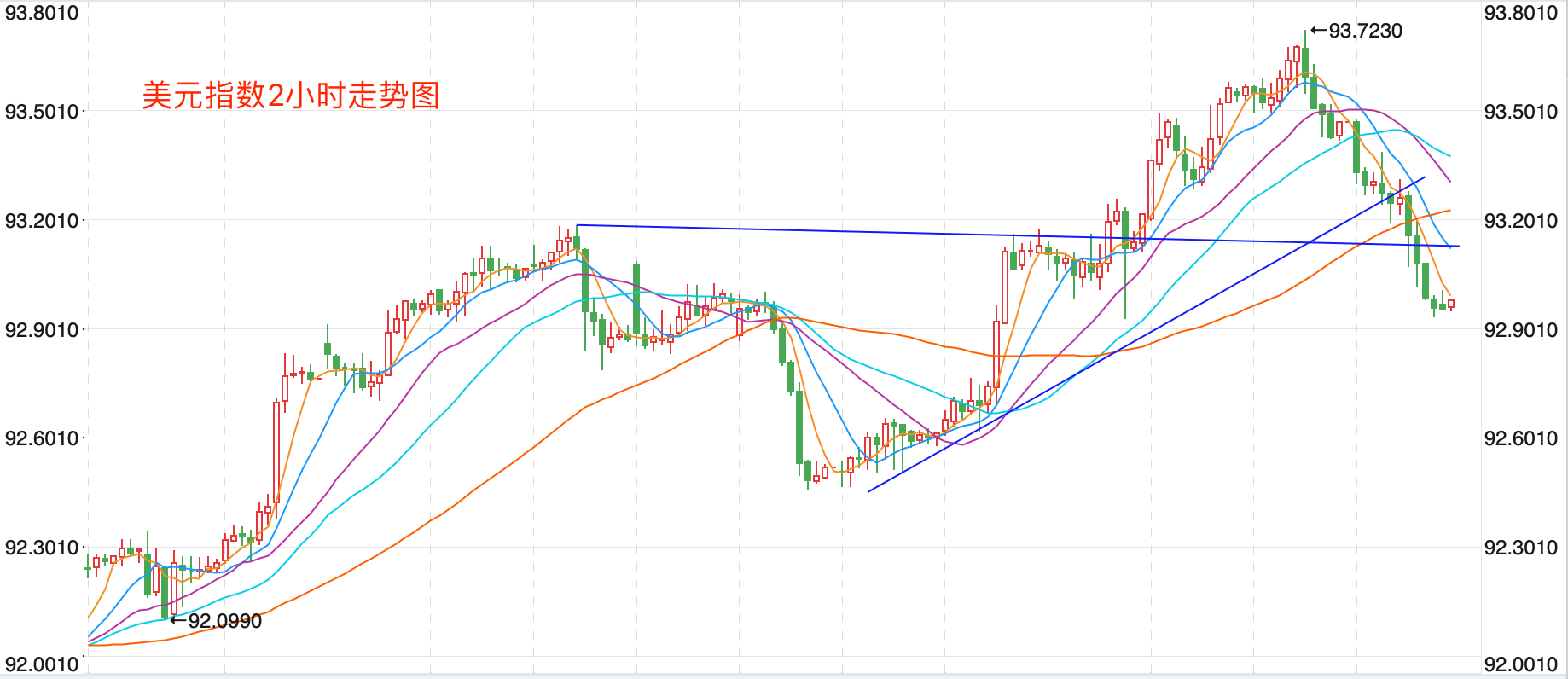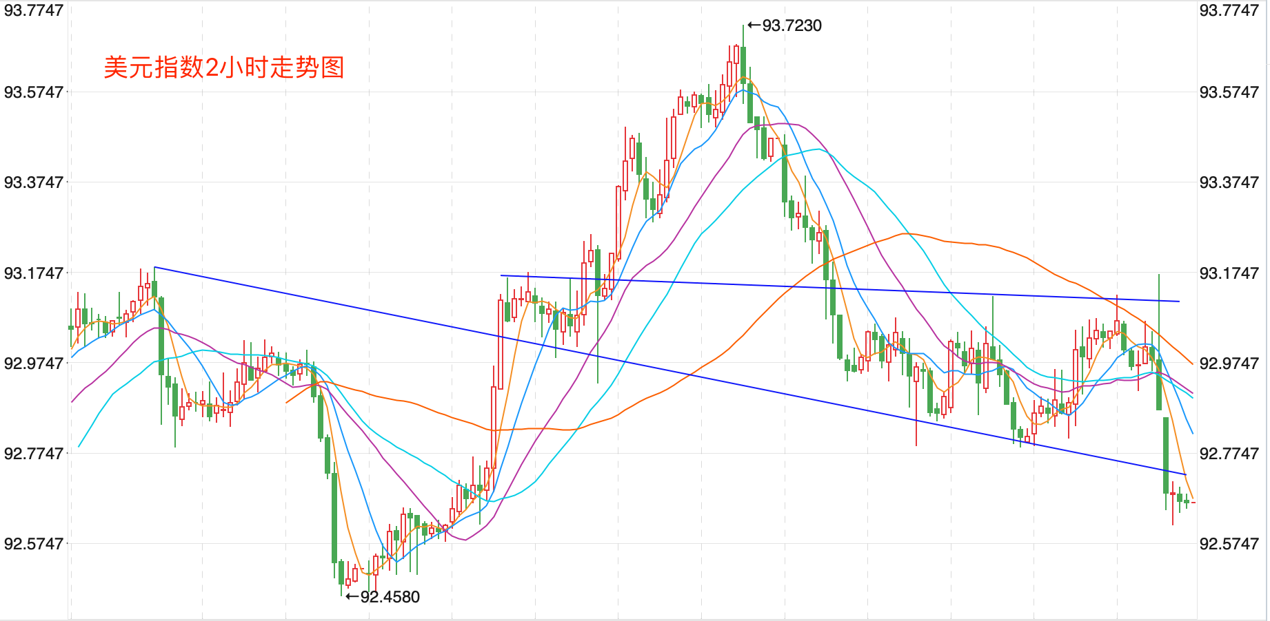 摘要 外汇市场美元结束了大幅度拉升出现了大跌,尾盘回落跌破93点关键支持,收低在92.954点附近,跌幅为-0.54%。非美货币则纷纷迎来反弹走势,欧元/美元企稳在1.17点整数位附近,反弹收高在1.1745点,涨幅为0.40%。美元/日元冲高回落整体走势依然是上下震荡,收低在109.69点,跌幅为-0.09%。美元/加元走高五个交易日迎来大跌走势,回落收低在1.2649点,跌幅为-1.36%。英镑/美元触底反弹,收高在1.3726点,涨幅为0.64%。澳元/美元探底反弹,收高在0.7112点,跌幅为-1.03%。美元/人民币离岸汇率直线下跌,收在6.4764点,跌幅为-0.36