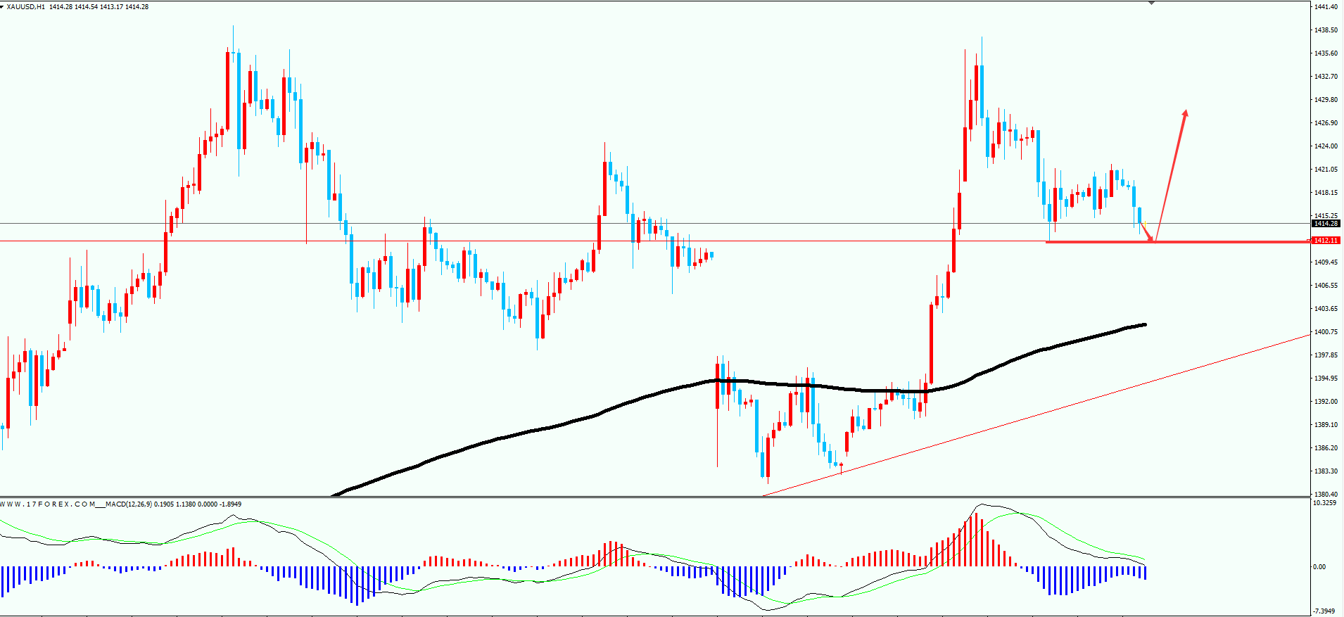截止到目前欧洲盘为止,黄金最高点报价 1437.8 ,最低点报价 1419.0 ,涨幅 188 点;美元最高点报价 97.07 ,最低点报价 96.85 ,跌幅 22 点;原油最高点报价 56.76 ,最低点报价 56.23 ,涨幅 53 点;欧元最高点报价 1.1294 ,最低点报价 1.1267 ,涨幅 27 点。 亚洲时段,金价开盘后窄幅震荡,现主要交投于 1425 一线。市场对全球经济发展前景比较悲观,澳洲联储降息强化了全球央行货币宽松的预期,增加了黄金的吸引力。同时,美元依然比较强势,市场对美国就业数据的预期比较乐观,可能会在短线限制金价的上行空间,有望给美元提供进一步上涨动能