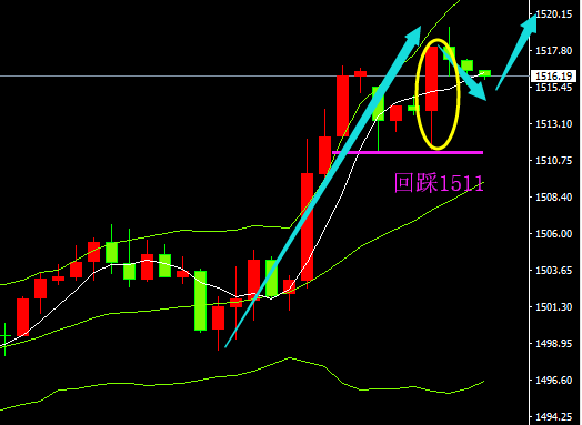早间资讯: 投资现货黄金,无论你现在盈亏如何,肯定都在积极备战。亏损的朋友虽然不甘心在这个市场把自己的资金被市场全部套走了。但是问题出在哪里?请各位朋友自己理性的分析一下,为什么自己总是慢别人一拍,所有的投资者面对的都是一样的行情。然而,面对同样的行情,投资者必然会做出不同的选择。做投资如果你想一夜暴富,那么让你将会有一百个夜去后悔莫及,没有人因100块一夜暴富,却有人因100元白手起家。一起学习的是知识,积累的才是财富! (✪ω✪)黄金实时分析思路: 技术面上看,黄金开盘走空,关注中轨1512附近位置,童晋诚认为若回落至该位置下方,则削弱短线看涨信号,5日均线支撑在1502附近,10日均线