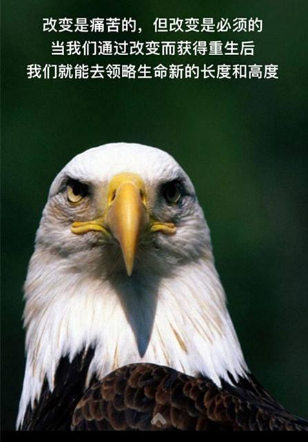 佛前一跪三千年,未见我佛心生怜。莫世尘埃遮佛眼,原是未献香火钱。佛若不贪,为何要世人供奉?佛不爱慕虚荣,为何要世人跪拜?我心有佛,佛却无我。受尽世间苦难,问佛。佛说:一切皆有定数。我笑:既然帮不到我,我拜你何用?佛曰普度众生,可没见过渡了谁! 铱珃今天想给大家讲一个非常励志的故事,这个故事可能有些人听过,有些人没听过。大家知道老鹰可以存活多长时间吗?排除非正常死亡外老鹰一般能活到40年,当他40岁的时候喙很厚而且羽毛也很多,想要展翅翱翔却发现怎么也飞不动了,也就意味着他再也抓不到猎物了,这个时候他有两种选择,第一种就是安安静静的等死,这可能不是他想要的,第二个选择是准备好充足的食物,拼尽全力