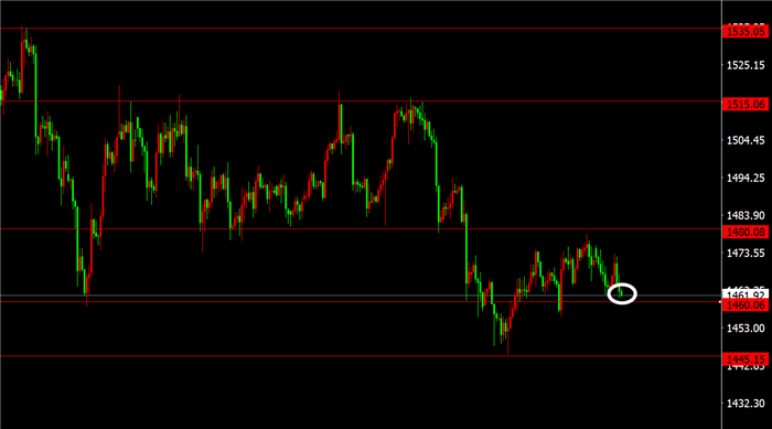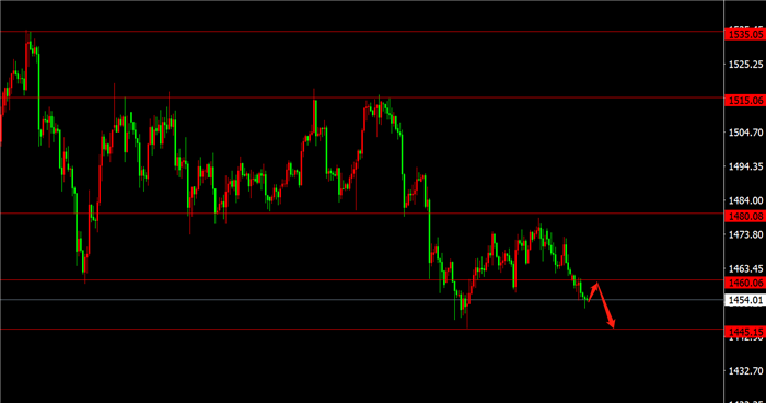 交易之路慢慢,随波逐流者多之!不谋全局者不足谋一城,市场风云,变幻莫测,定其心,观其势,谋定而后动,不乱于心,不困于情,运筹帷幄之中,方能决胜千里之外。名声与尊贵,来自于真才实学,有德自然香,大家好,我是李茉馨! 11.26黄金走势详解 消息面:因国际贸易乐观情绪持续升温,继续提振市场风险偏好,欧美股市继续上涨,这使得黄金跌至近两周低点。同时保守党赢得大选的预期持续升温,这使得英镑计价的黄金跌至四个月低点。 技术面:日线级别上黄金已经三连阴,多头抵抗无力,虽然当前暂时下跌至前低附近,但是黄金并没有出现止跌的信号,所以早盘还是顺势直接空,如果有反弹见1456-57区域可以补仓空! 11.26原