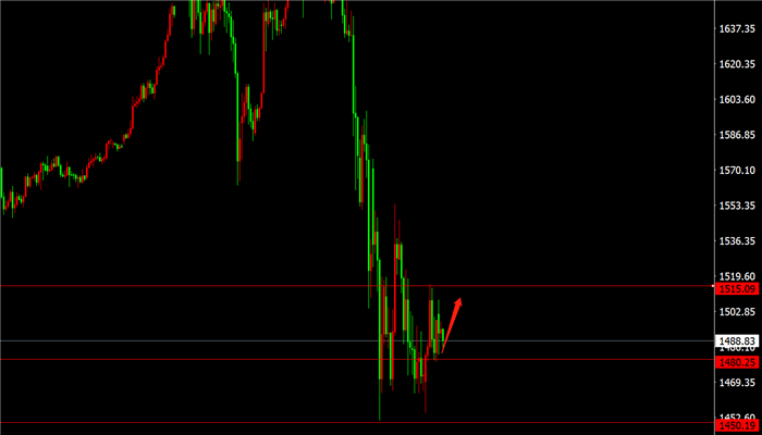 交易之路慢慢,随波逐流者多之!不谋全局者不足谋一城,市场风云,变幻莫测,定其心,观其势,谋定而后动,不乱于心,不困于情,运筹帷幄之中,方能决胜千里之外。名声与尊贵,来自于真才实学,有德自然香,大家好,我是李茉馨! 下周黄金走势详解 消息面:本周黄金震荡走跌,因流动性需求市场继续抛售黄金,推动美元站上100关口,最高触及103一线附近,但是因六家主流央行宣布协同行动以增强美元流动性,周五黄金收复部分失地。 技术面:虽然昨日黄金早盘跌至1450区域,随后快速拉升,美盘再次下挫,但是在1480区域获得支撑后反弹。当前黄金阶段性底部形态,下周黄金预计是探底反弹的走势,第一步测试1535压力位置,震荡