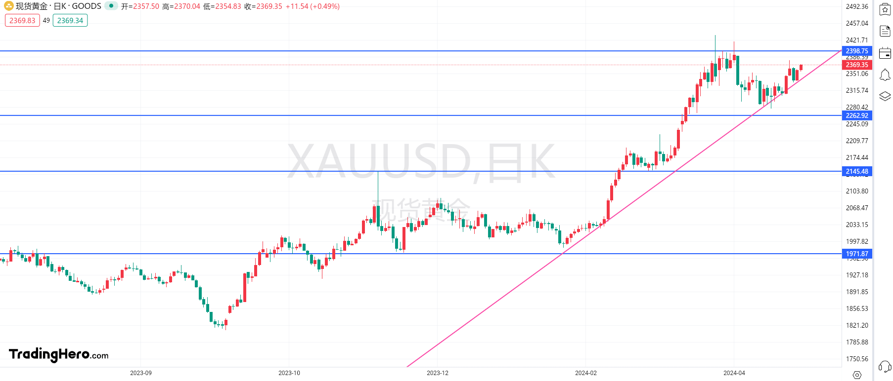 趋势决定走势,走势体现趋势。向希只在对的时间做对的交易,没到我们布局的点位,宁可不操作,我们也不愿意去冒险。守得住寂寞,才能留得住利润!向希工作室提供专业分析指导建议(黄金,外汇,原油,指数等),十年磨一剑,只待今朝。 君子也,行天地之间,可御万物;小人也,游黑暗之中,寸步难行。故君子进,则以家国浴其心,平治天下;君子退,则以澡德浴其身,修明圣学。君子小人非是万殊,盖仁义忠信守之与未守也;君子者,施守仁义忠信;小人者,徒徙财货利欲。非是仁义忠信难以施守,其心不欲为也。 黄金现价2375.60美元,昨日的行情与我们的分析如出一辙,2393/2395区间做的空单迎来大丰收,最低给到了2370