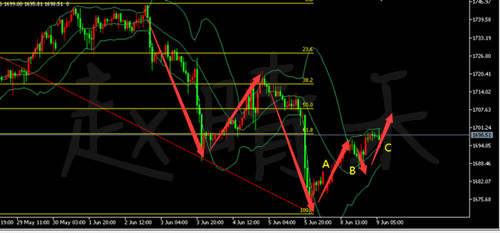 古语有云:“凡事预则立,不预则废”,只有合理的布局策略和操作建议才能为自己打开财富之门。个人投资者,凭一己之力面对市场,很容易出现当局者迷的情况,大格局决定大方向,胸怀决定成就,在这个千变万化的市场中,行情的涨跌不是靠个人主观意志所决定的,而是充斥着多于空的搏杀,胜利与失败则时刻伴随左右。 黄金走势分析: 在上周五美国非农数据公布后,黄金跌破1692美元/盎司的关键支撑,下探至1670低点支撑。本周一黄金就地反弹,截止到目前最高触及上方1700高点。 对于黄金的走势,这波反弹晴禾看好在1700-07区间,很明显目前黄金反弹还没有到位,上方还有继续上冲的可能。 大家可以看看小时图