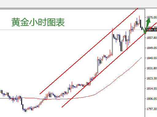 技术是生存之本,授人以鱼不如授人以渔,投资的本身就是一种对自身的修炼。不断的修炼,才能晋升为成功者的行列。想要走的更远,与谁同行才是关键,一个人能走多远,要看他有谁同行;一个人有多优秀,要看他有谁指点。 黄金多头继续上行,强势上攻,说明市场浓烈的避险情绪氛围,当前黄金走势上看,大概率要继续冲击前高,如果本周延续强劲上攻力度,有望到达1900区域,当前需要关注欧盘时刻1880区域能否突破。 黄金早间回踩到支撑1865区域,然后也随着午后拉高到1876一线,从现在来看,多头要在上破1900只是时间问题,完美的涨势呼应了我之前的预期,一切来得都太快了。 技术面黄金1小时走势价格突破三角形上轨阻力后