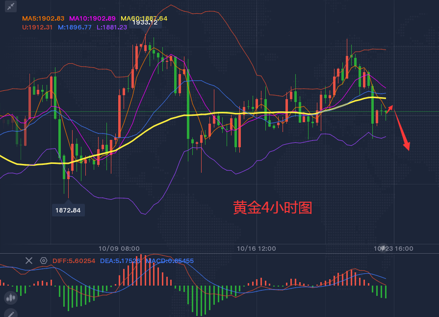 应势而谋,因势而动,顺势而为,乘势而上,方能运筹帷幄之中———大家好我是柏梦月老师! 绝大多数人获利只是个过程,结果往往是亏损收场。如果有亏损严重或想要回本的朋友都可以找到柏老师,老师定全力以赴带你扭转全局。行情来临时仅凭一个缺乏专业知识、不具备多年操作经验、没有一套稳健方案与操作思路的你,你觉得自己能把握多少收益呢?但你在一个正确指导下,实现最终获利并非难事! 昨日指导实况回顾:亚盘给出1917空,1913多,分别止盈1912,1918一线。欧盘给出1919空,止盈1914一线。美盘给出1905空单,止损1908一线,3胜1损。实事求是,杜绝虚假! 黄金昨日(10.22)高位滑落收低,将周