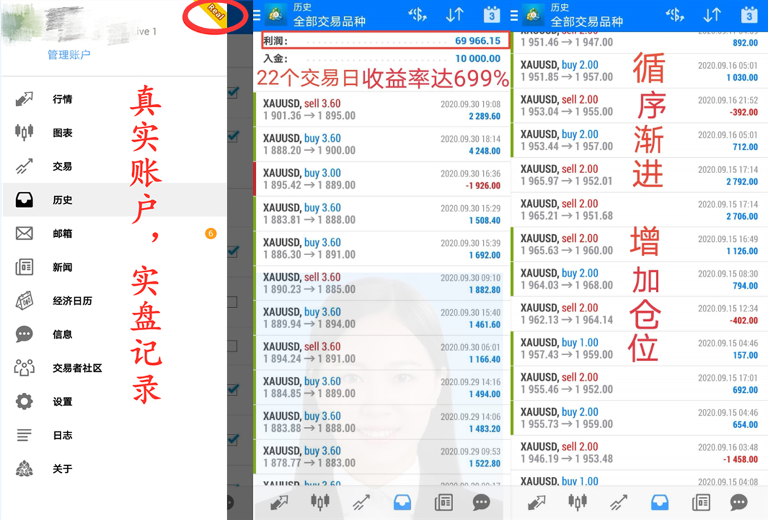 应势而谋,因势而动,顺势而为,乘势而上,方能运筹帷幄之中———大家好我是柏梦月老师! 当你在到处寻找文章看建议的时候,证明一点,你在亏损!要么就是对自己操作手法不自信或者结果不理想,我们把资金拿来做投资是为了获得收益,不是拿来亏损的,行情来临时仅凭一个没有专业知识、大量操作经验的你,你觉得自己能把握多少收益呢? 从业多年这个市场确实变了,被人(所谓的业务员)搞烂了搞臭了,很多人怕,怕下单,怕金融老师,怕行情,总之什么都怕。但你在一个正确的指导之下,实现稳健获利并非难事。本人用事实说话:下图为我实盘学员交易实况,入金1万美金,通过指导循序渐进,逐步增加仓位,用时22个交易日实现本金 增涨 近7
