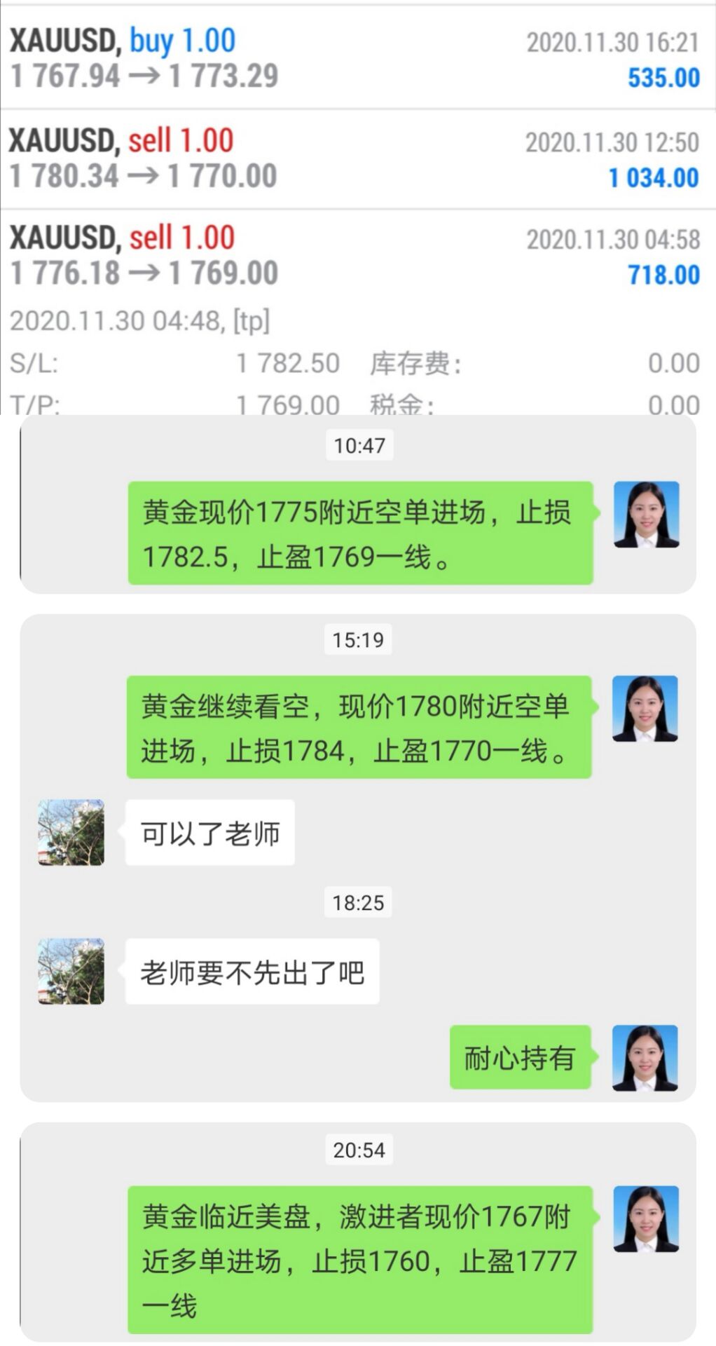 应势而谋,因势而动,顺势而为,乘势而上,方能运筹帷幄之中———大家好我是柏梦月(稳健布局,扭亏为盈) 正处于亏损中的周先生找到柏老师,向老师诉说之前投资亏损的经历,也曾单枪匹马、也曾跟随他人激进操作思路,而后均以亏损告终。慕名而来的周先生抱着试一试的心态入金一万,跟上老师稳健布局方案,采用短中线搭配操作思路(短线为主,操作上及时把握利润落袋为安;中线为辅,明确区间后待合适点位入场,耐心等待收线钓大鱼),总计用时12个交易日,以81.8%的准确率打造出251%的交易周期收益率———详情见下图,用事实说话; 建议在交易资金充裕的时候找到老师并通过默契配合加上稳健布局实现资金收益最大化,而不是在你