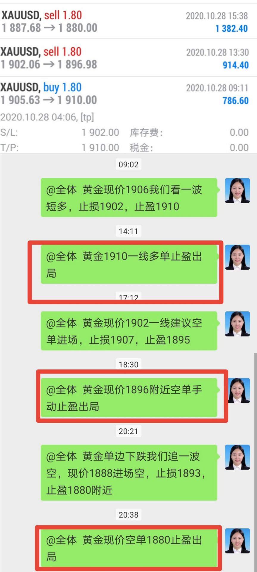 永远不要低估市场的力量,保持敬畏与机敏!——大家好我是柏梦月老师! 从业多年市场风气确实有所变化,被人(所谓的业务员)搞的不如从前,但你在一个正确指导下,实现稳健获利并非难事,本人用事实说话:施先生操作初期本金亏损严重,慕名找到柏老师加入实盘后跟随策略,入金2.5W美金,短线配合少量中长线波动利润单进行操作,用时15个交易日,以76.5%的准确率创造103%收益率,收获本金 增翻 佳绩! 现货黄金周五(10月23日)亚市盘初开盘小幅上涨,直至欧盘,因投资者希望美国政府出台新冠病毒救助计划,提振购买黄金对冲政府预算赤字的买家,黄金扩大涨幅,盘中最高上至1914.15美元/盎司;美市盘中,在美国