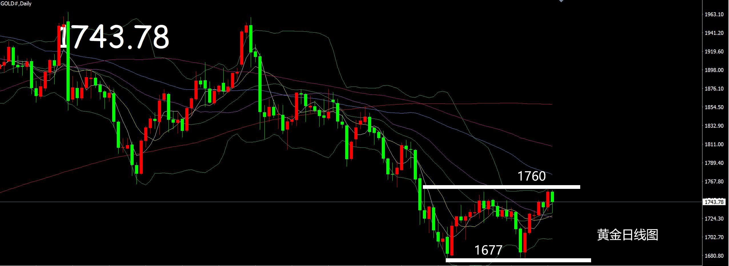 每个周六,我们都会对本周市场做一个总结以及对下周行情做一个展望,本周黄金整体上表现为反弹延续,不过上方没有突破区间上轨位置,这也意味着趋势转折点依然没有出现,最高触及1758一线承压回踩,周线最终报收一个带有上影线的小阳线。 周线MA10阻力在1753,震荡区间上轨阻力在1756-60,这个位置没有破位行情就还存在震荡反复,周五向下回踩起涨点1731止跌反弹,小区间继续形成,下周重点关注1731-58区间破位情况,日线上大的区间在1677-1760,有效破位后才会出现趋势的延续行情。 日线周期上多头短暂占据优势,从前期回踩触及1677一线反弹来说力度还不错,同时时间也够快,所以更建议依托17