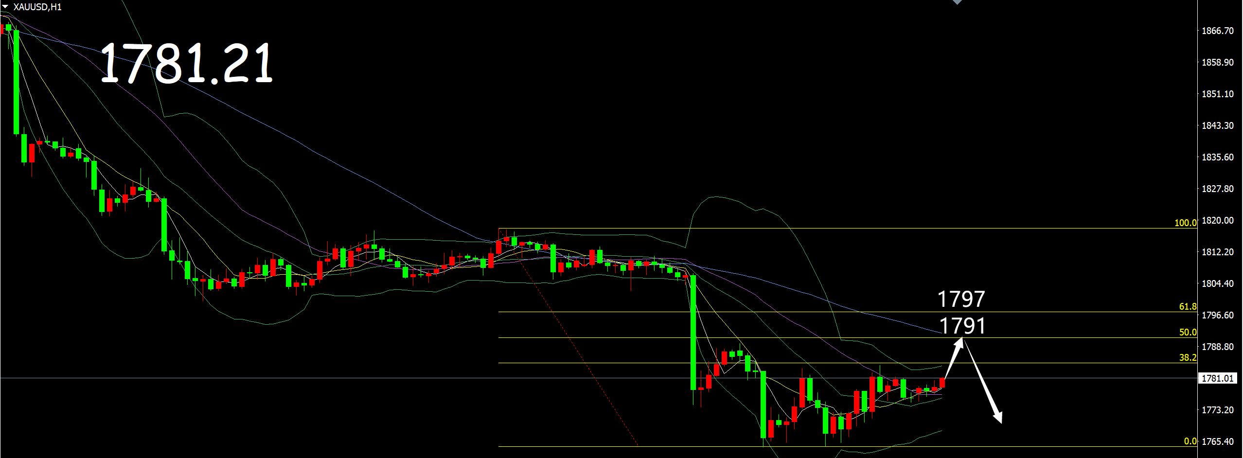 16点,来看一下今天的行情。 黄金上周五继续破底下跌之后今天再度向下延续,最低触及1864一线反抽,这个位置是前期顶底转换支撑位置,出现反抽较为正常。 而主要是见底信号还是短线的反抽修正还需要后面的走势来确认,日线方面跌破200天均线之后能走多远也不确定,所以继续跑短线即可,大级别上行情不是空头,也需要防止多头随时反扑。 早间方面安排了两次空单全部拿下利润空间,目前价格反弹到1780上方,反抽幅度过大也就意味着至少欧盘破底的可能性几乎没有了,围绕区间震荡为主。 上方阻力1789-90尝试参与空单,止损1795,目标看1780下方,做多方面由于短线还是空头趋势不是很建议,较为激进1770-72