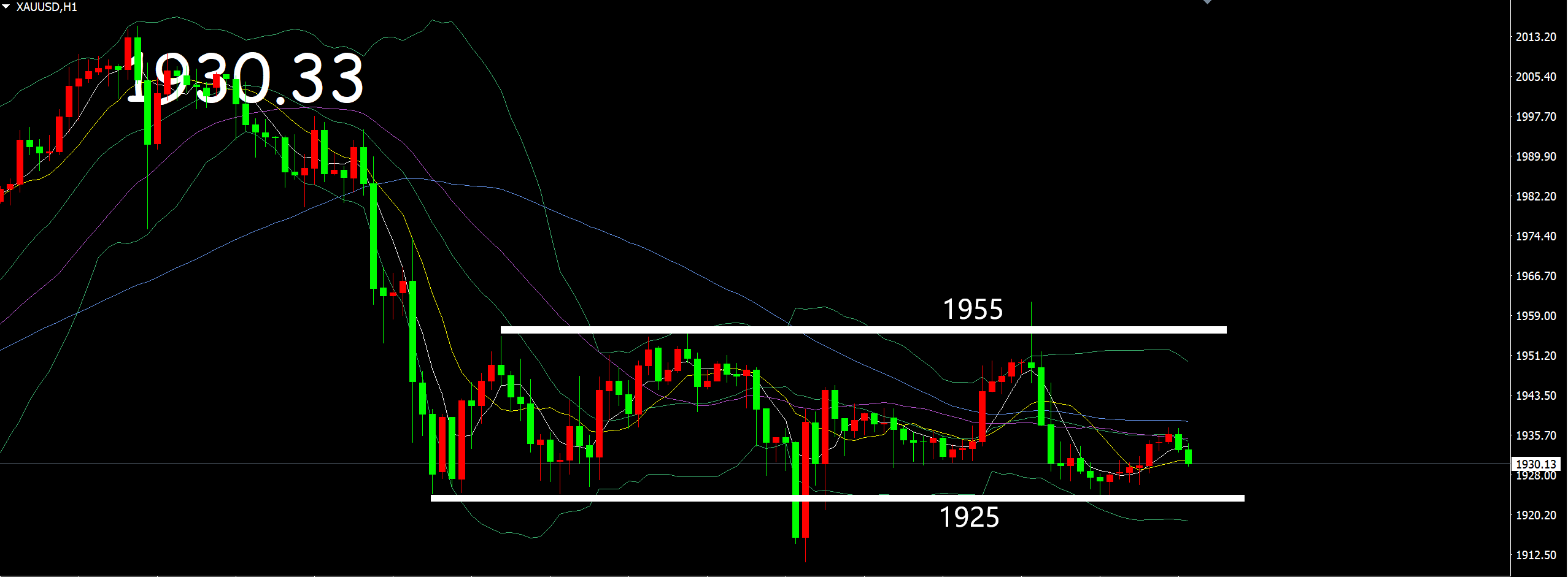 23点,我们来对今日行情做一个总结。 美盘前快速破底,最低跌至1912一线,但随后的快速反抽说明只是虚破,并不是有效破位,而这个探底回升洗盘的确出乎意料之外。 破位之后我们按照顶底转换安排了空单,但反抽力度太大也令空单止损出局,下跌当中反弹力度太大就会让行情陷入震荡当中,而再次触及下跌反抽的0.618位置就是开空的机会,我们也安排了1938-40一线空单,顺利拿下利润。 同时回踩的0.618位置也是做多的点,1922.5多单也顺利收割出局,目前价格继续回到1940上方,凌晨方面预计围绕区间运行概率较大,走不出破位行情了。 今日周五保守的可以休息了,还有想参与的关注1930-31做多,止损19
