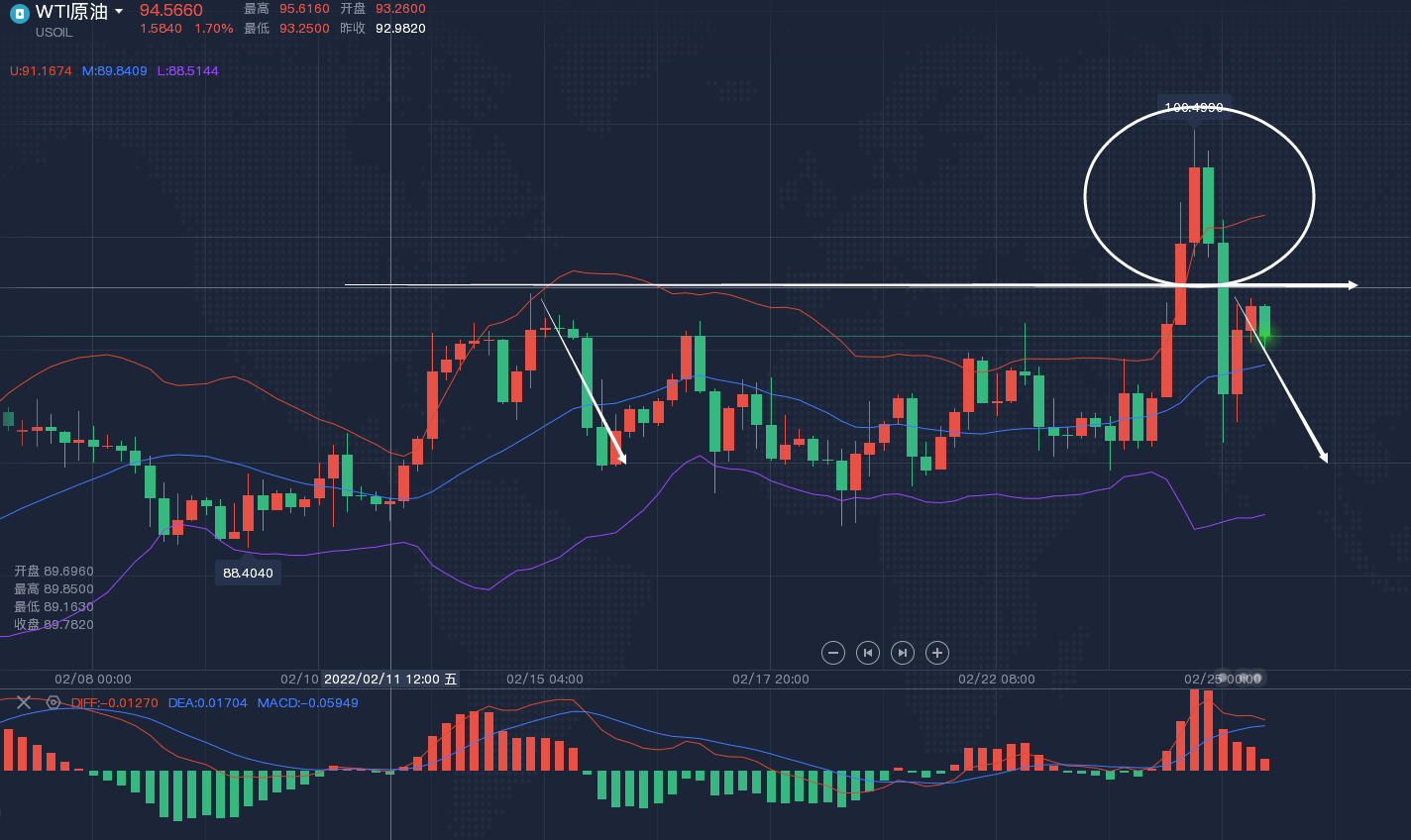 大家好,依旧是奋斗在一线的云宸给大家带来最新金油策略! 2月28日 星期一 赠言:没有人可以和生活讨价还价,所以只要活着,就一定要努力。机会是靠自己争取的,成功是需要自己努力的。你,能行。 ---2.28黄金日内分析如下: ①、黄金不出意料开盘先受避险走高,但是未破1920压制这是在传播弱势的信号,而且从趋势机构上很明显已经出现见顶信号,并且日线金针探顶弱势双重打击,最重要的是有机构大资金护盘空头,整体趋势上笔者认为空头在不远还会席卷市场,目前俄乌第二次开启谈判,一旦成功和解,那么跌破1850-1830将是轻而易举,即便和谈失败大概率涨势也不会大,小反弹再空即可。 ②、谈谈盘面:上周受机构砸