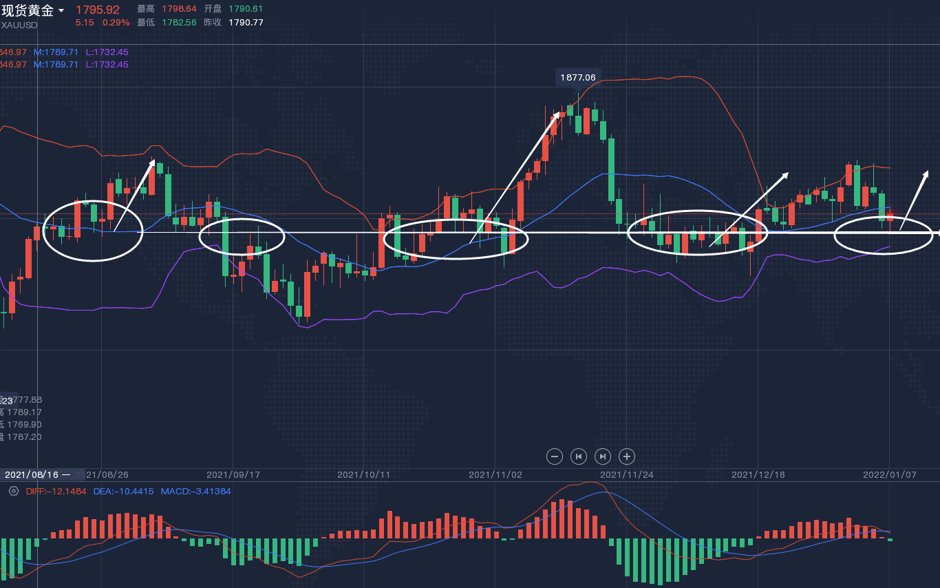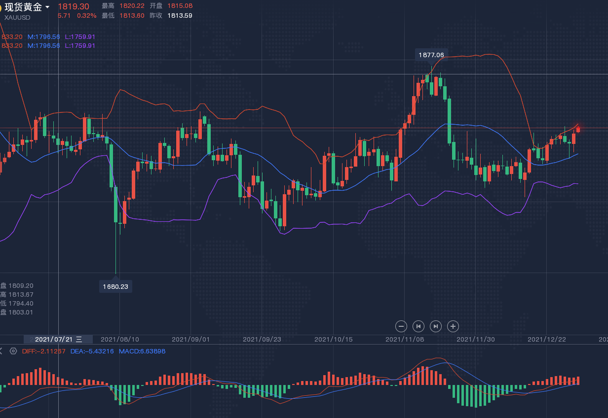大家晚上好,依旧是奋斗在一线的云宸给大家带来最新金油策略! 12月31日 星期五 赠言:旧岁已展千重锦,新年在进百尺杆,一个美好的新的年轮即将呈现在我们面前,让我们携手共进,把握崭新机遇。 ---12.31黄金晚间分析如下: ①、今晚是2021年的最后一个交易日,在预祝大家新年快乐的同时给上精准的策略或许才是真正的“新年礼物”,首先看盘中日线收线情况,阴阳循环多空互不相让,上方有月线中轴线1820压制,下有1790阵地支撑反弹,所以在元旦来临时交投会比较清淡,依旧会陷入区间震荡当中。 ②、就目前而言别看黄金反弹较快,一点风吹草动打回原形也是轻而易举,从投机报告上可以明显感受到1820-182