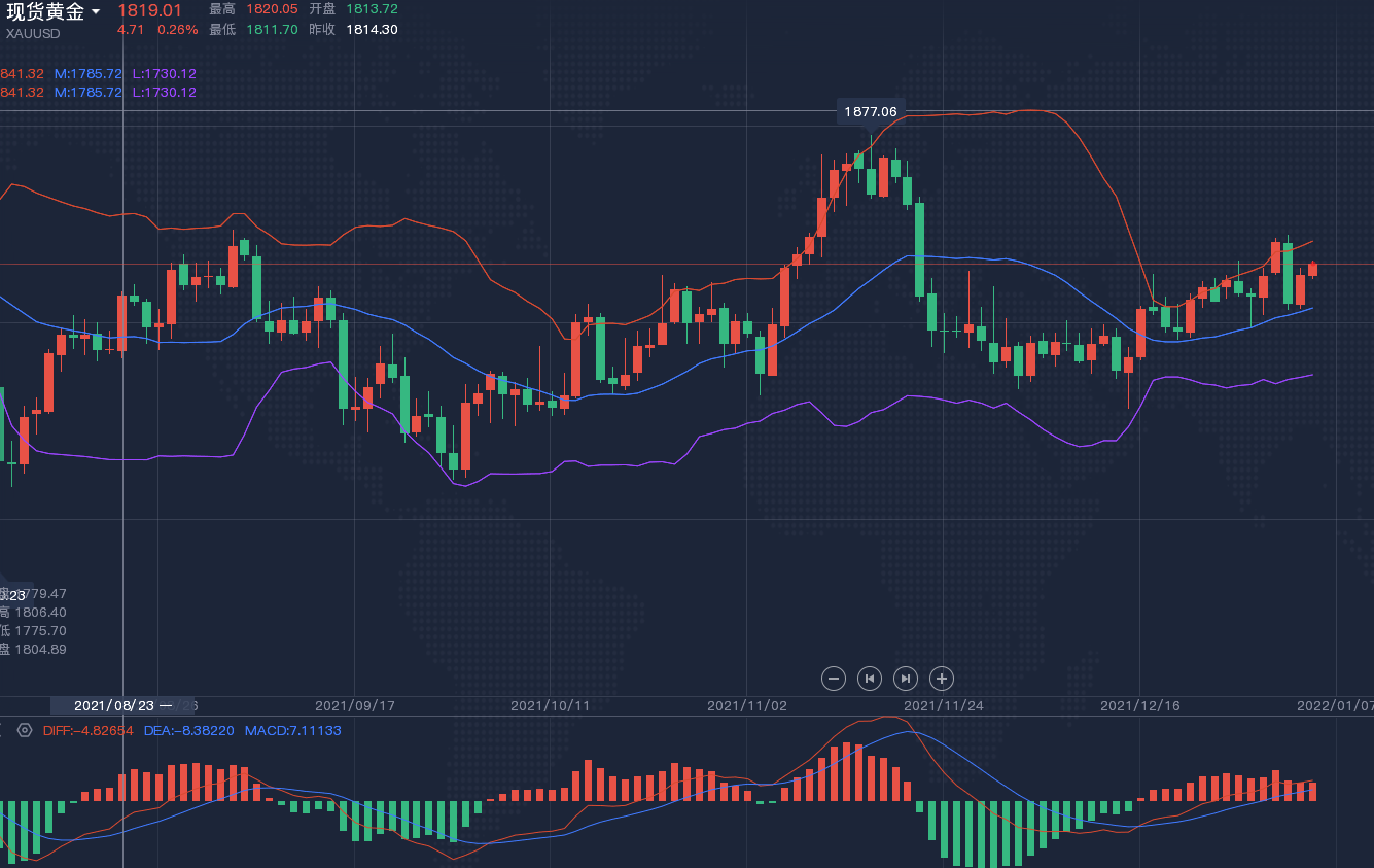 大家好,依旧是奋斗在一线的云宸给大家带来最新金油策略! 1月4日 星期二 赠言:成功不是将来才有的,而是从决定去做的那一刻起,持续累积而成。 ---1.4黄金日内分析如下: ①、黄金多头最终败在加息预期之下开启回落模式,这也是意料之中的,首先反弹后上方就是1833-1835日线周线双强压地带,在没有极强的刺激之下难以攻破,再有疫苗缓解疫情恐慌以及全球央行加息预期的开启皆是让黄金多头难有继续上攻的能力,但是要记住一点,当下行情多空转变极快,实则还在区间震荡当中,今日就不要追单了,先看反弹修复后再空。 ②、结合当下的结构走势,经过下跌行情出现拐头向下的格局,处于弱势区域波动,但昨日收线情况看是企