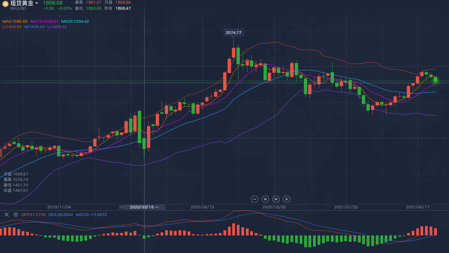 再苦再累,只要坚持往前走,属于你的风景终会出现,只要是自己选择的,那么就无怨无悔。强调不要在乎你的资金量少,在笔者云宸这里不论资金大小,皆可放开胆魄来询问跟单即可。资金量都是积少成多,这不算问题,问题是你是否有胆量迈出第一步来跟随,你们好好揣摩,资金量不是最重要的,重要是否敢跟随对的人! ---6.21黄金日内分析如下: 黄金今日只说一个重点,那么就是关注1860-1864企稳后的反弹力度,周初定然会围绕1760-65这个位置反复测试,首先1764是前期上涨1960起涨点,也是前顶底转换的关键支撑位,虽说目前周线收盘光脚大阴空头暂时控制盘面,但若能惯性下跌后企稳1864之上那么将形成阶段性底