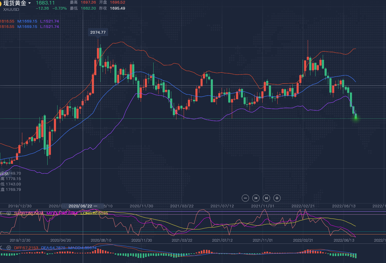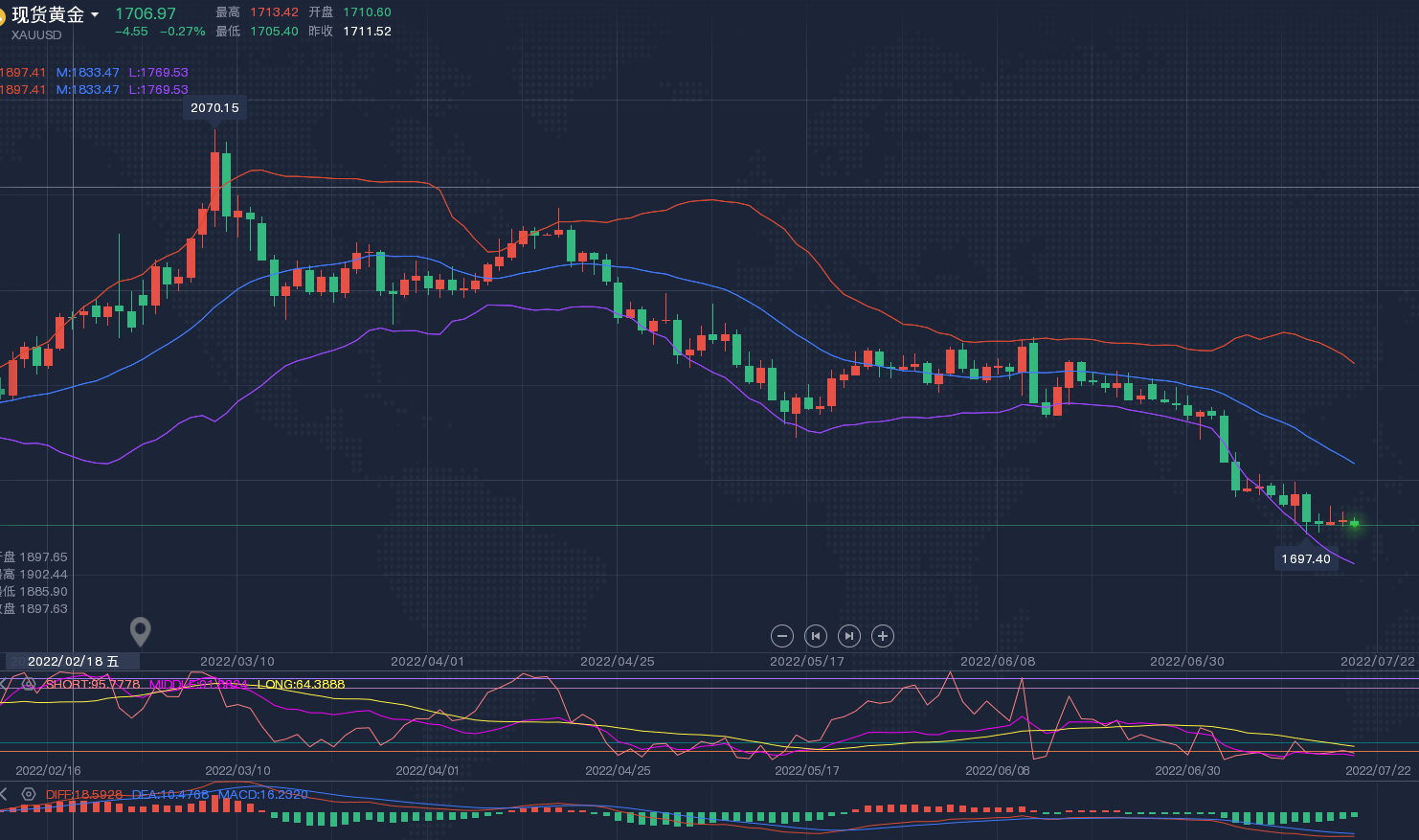 大家好,依旧是奋斗在一线的云宸给大家带来最新金油策略! 7月18日 星期一 赠言:每日简简单单几句肺腑之言,希望能帮到正处于迷茫中的你。 ---7.18黄金原油日内分析预测: ①、黄金虽美联储大幅加息信号浓郁从而打压金价持续下行,但从收线企稳1700之上来看市场对于空头的信心并不是很足,因为在上周五零售数据公布后,美联储部分官员并不赞成7月加息100个基点的行为,这对于空头的唯一助力也摇摇欲坠,加上高通膨以及地缘不稳定的情况下金价周初预计会震荡走高。 ②、盘面中黄金4小时图中有底部背离的筑底迹象,一旦形成金叉目标,那么则会形成阶梯的上行。反之就算继续走跌那么1680也是极限底部,何必为了下方
