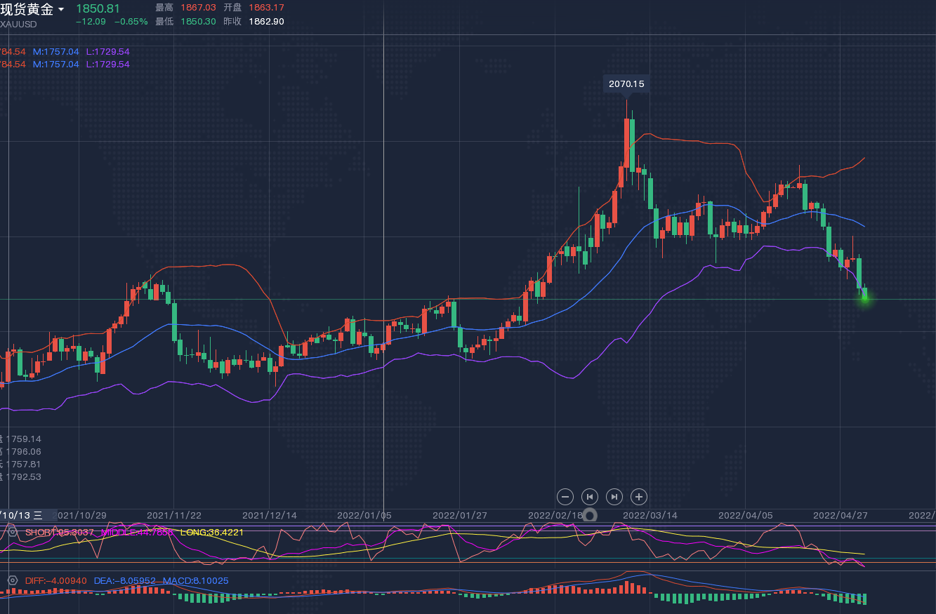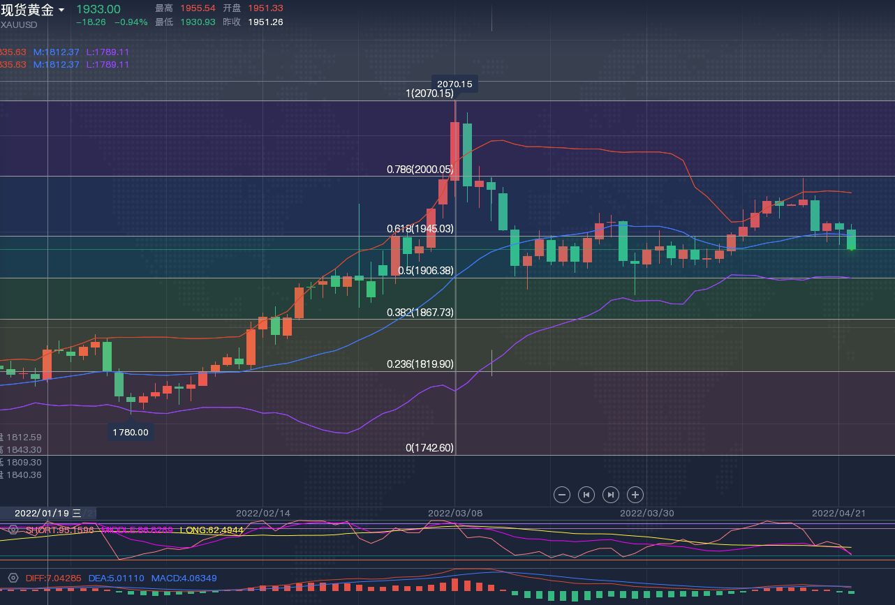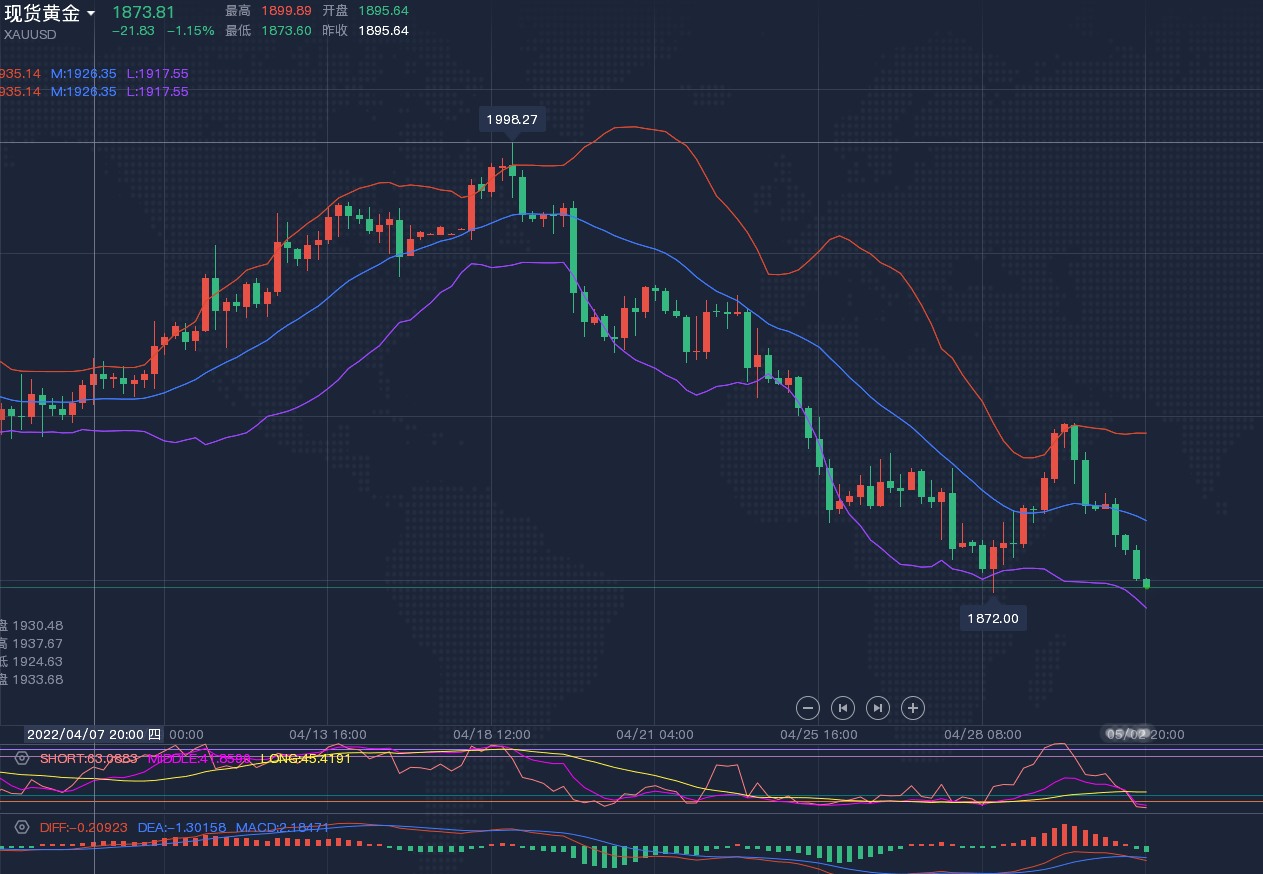 大家好,依旧是奋斗在一线的云宸给大家带来最新金油策略! 4月29日 星期五 赠言:成功不是将来才有的,而是从决定去做的那一刻起,持续累积而成。 ---4.29黄金日内分析如下: ①、黄金验证昨日思路,反攻号角响起,目前已顺利冲高1915一带震荡。解析走高的原因:第一加息缩表的利空炒作太久了,行情也是给出了下跌的幅度,但加息没有真正落地,市场做空的心还悬在半空中,所以出现反弹是必然。第二:技术面中1870一带是前顶底转换位,下跌此位企稳快速反弹表明支撑极强,同时RSI超卖严重,最重要的是日线收阳包阴形态,打破了极弱格局,连续利好之下今日黄金的布局思路就是低多去对待。 ②、回归重点,进场点位的问