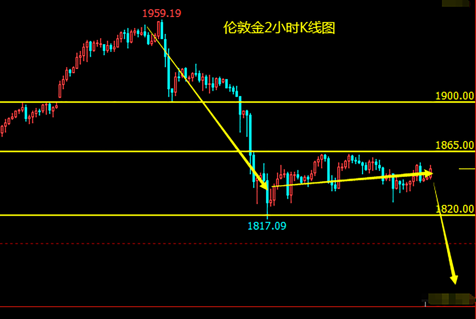 昨日回顾 昨日晚盘时段美联储主席鲍威尔在会议讲话中表示,不会很快加息和缩减债券购买。鲍威尔的讲话平息了市场对于美联储将快速加息的担忧,美指冲高回落。而拜登助手对市场透漏拜登计划推出规模近2万亿美元的刺激计划。在无市场主线的当下,此消息无异于一枚核弹即将引爆市场。而这亦是黄金一直低位整理而没能上行的主要原因。日内走势无需多言,静待消息引爆市场、黄金高位下行。 日内分析 技术分析而言,伦敦金2小时K线形态呈现“下行---整理---下行”的走势形态。短期的支撑位位于1820一线(前期低点附近)、短期的压力位位于1865一线(前期高点附近)。 操作策略 1855附近做空,止盈1840、1820,止损