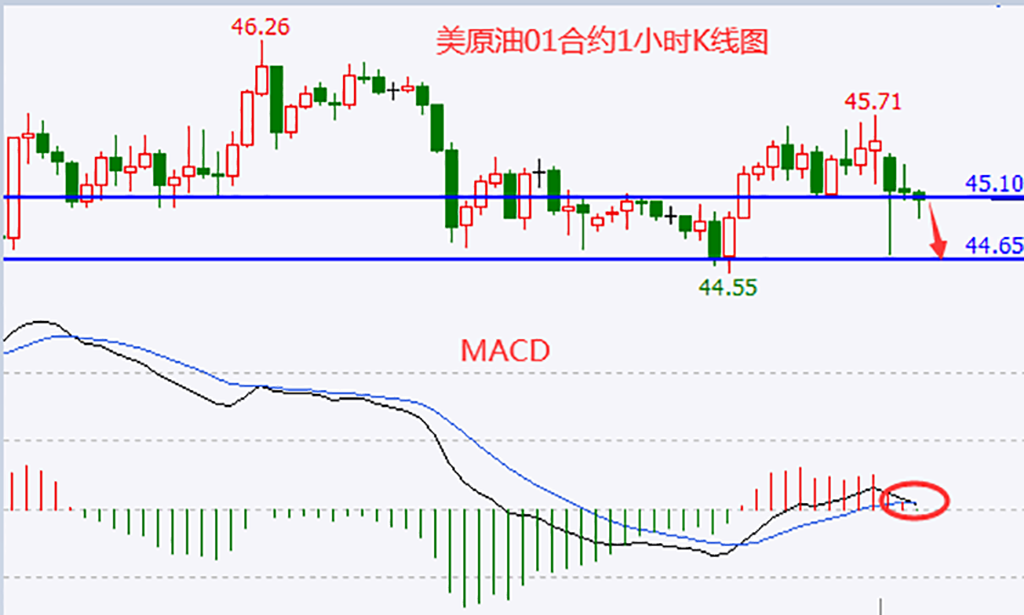 昨日回顾 因昨日晚盘时段公布的EIA原油库存数据意外低于预期,引发美油价格大幅拉升,最高触及46.26一线,再次刷新了自今年4月份以来的价格高点。而对于11月30日举办的OPEC+会议,市场仍然认为在此次会议上会达成将原油延迟增产3个月的协议。这在一定程度上对原油价格构成支撑。尽管市场的主流观点认为全球经济将加速复苏。但原油价格的快速拉升显然对通胀上行构成了威胁。若欧洲疫情再次爆发恐将成为原油价格下行的导火索。 日内分析 技术分析而言,短期支撑位为45.50一线(此位置为昨日K线形态的颈线位置)原油小周期(1小时K线周期)呈现多头排列走势。MACD指标位于0轴之上,预示短线价格有进一步上行的