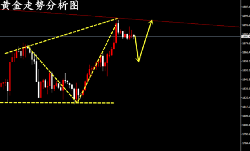 谋而后动,善其谋而后动成道也,方能决胜于千里之外——大家好我是程天赐(提前布局,把控风险,扭亏为盈) 交易小知识:选择进场之后,优先带好止损,建议30到50点止损,这个可以在这个区间灵活去处置,但是止损必须要带,除此以外还应参照行情走势带好止盈,建议止盈不要随便修改,不能因为行情上下波动就轻易出局,导致收益降低,最终导致赚小钱亏大钱。 黄金亚盘惯性探高,刷新近期反弹高点1906.80附近承压震荡,欧盘时段, 美元 一波冲高打压金价快速回落,将台阶支撑点以及早盘起涨点同步跌破,一波快速的下挫,慢涨快下跌的走法,指标凌乱发散并不是单边多头,一旦遇阻,回撤的空间也是比较大。这也是近期拉锯反复洗盘为
