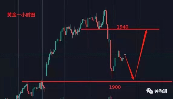 对于昨日的行情,个人还是在预料之中的,之前也是多次在文中强调不要盲目去追涨,谨防黄金快速下跌回补周一跳涨的缺口。这是从业多年以来的经验:大幅跳涨必有回补。只是没想到黄金回补缺口竟然只用了一天的时间,直接暴跌近60美元的幅度,最低也是跌到了我们之前文中提到的压力转强支撑1900附近,随即快速反弹至1920附近整理收盘。 从技术面来看4小时连阳慢涨双阴线回吐近半空间,加上此前的整理上涨空间,目前回撤近半,破箱体区间之后放量下跌,连阴下挫过程中伴随小阳线修正,但最终还是未能回到5日均线上方,所以今日黄金仍有进一步下跌的风险。今日我们重点关注1900关键支撑点的防守,而昨日下跌1940之后经过一个小