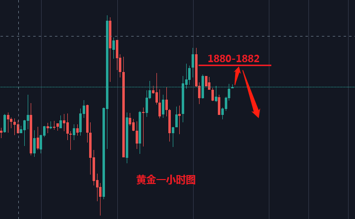 金价周四徘徊在接近前一交易日创下的逾四个月高位附近,因美元和美国公债收益率下跌,投资者淡定看待美联储可能缩减经济支持措施的暗示。周四发布的美联储会议记录后,市场认为尽管美联储在谈论缩减量化宽松,但实际上不太可能很快看到货币宽松政策减少。尽管美国初请失业金人数有所下降,但金价仍在上涨,就业状况依然不佳。 从技术面来看周四金价高位回落,最高上涨至1884美元,日线以阴线收盘,日线延续下跌态势,并有高位见顶迹象,今日关注1877美元附近压力和1860美元支撑,金价有望继续探底。小时图金价震荡下跌,均线系统高位拐头形成压制,1880转化为强压力,布林中轨在1874附近形成重要压力,布林上轨压力在18