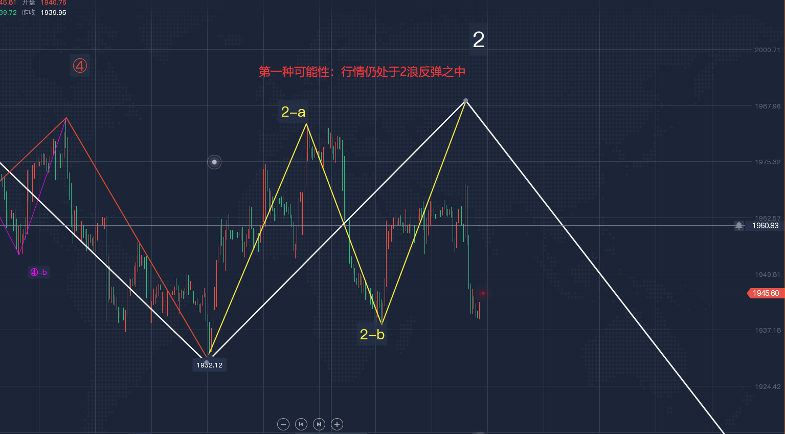 黄金走势分析 1、箱体震荡:目前1小时周期的行情整体呈1940-1966箱体震荡,短线虽有逾越,但整体仍处于该区间之中,箱体震荡区间仍有效,后市仍需关注其破位方向;同时因行情整体处于下行趋势之中,故后市大概率的破位方向为下行,高位谨慎追多!目前1小时周期接连录得2根大阴破位箱体震荡底部1940一线,最低回落至1930一线并未突破前低1924,谨防破低反涨! 2、波浪结构分析:由之前的分析可知,目前行情整体处于X-B浪回落之中,在这里便不再赘述其结构和划分依据,有兴趣的朋友可查看之前文章或单/线郭广盈。自2079起的行情可细分成5浪结构,现行情处于2浪反弹之中,因行情不断下行破位由1932和1