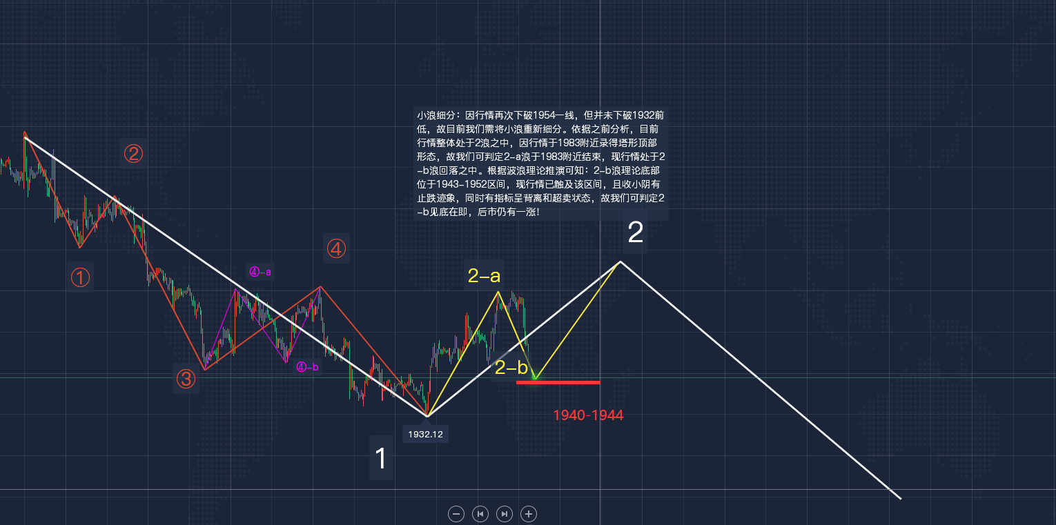 黄金走势分析: 盘面分析: 1小时周期于阶段性高点录得黄昏之星形态后,后续录得一系列的k线呈震荡下行且目前收大阴破位1962一线,但目前行情已触及强支撑位1954一线(根据极性转换原则:1954为前市多空转换较为频繁的点位,目前已转换成支撑),欧美盘触及该点位可跟进多单。目前1小时周期的Ma均线交叉向下指向看跌,但Ma均线并不具备抓底功能,故低位谨慎追空。1小时周期和15分钟周期的KDJ交叉向下指向看跌,短线可看下行,但目前各个周期的KDJ皆处于超卖状态,后市需关注其超卖状态的解除方式。1小时周期的RSI并未见背离信号,后市可继续关注。1小时周期的成交量于行情呈背离,短线可看反弹!