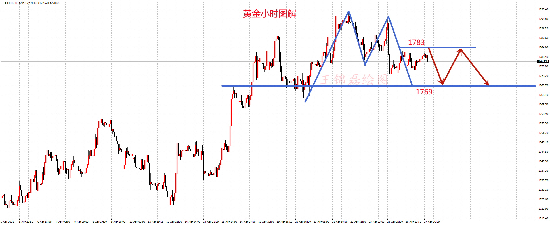 比尔盖茨说:“赚不到钱,并不是没钱可赚,而是不在赚钱的圈子内”;马云说:“成不了富人,并不是不能变富,而是没有富人的思维”。在现货黄金市场,我们不缺机会,缺的是了解机会的意愿,判断机会的眼光,尝试机会的勇气,坚持机会的恒心以及相信自己的信念。”盈利就是摆在我们面前的机会,我带您提前布局抓住机会。(联系方式见文章末) 现货黄金昨日的走势虽然说走得比较纠结,但总体来讲基本符合笔者的预期,可惜的是金价刺破1770,并未实质性跌破,走出单边暴跌行情,所以笔者一波空头趋势汗青没有拿到大满贯。昨日1780放空,美盘盘中暴跌,坚持就是胜利。虽然隔夜金价遇支撑反弹,形似V型反弹,但最终到底是反弹还是反转,就