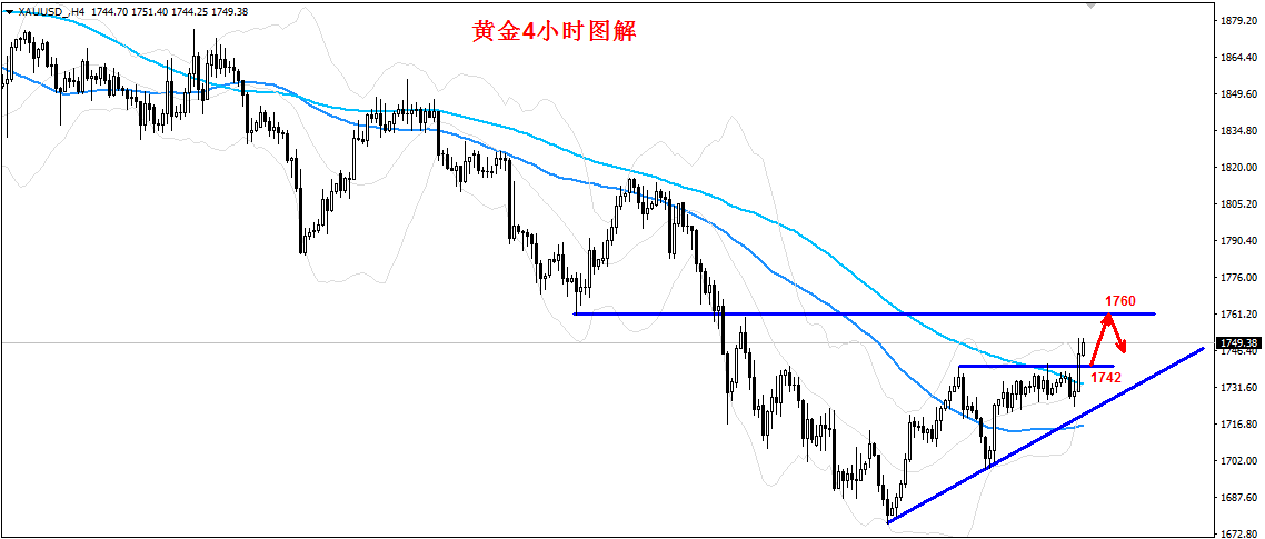 突如其来的上涨,默不作声的张望,不是行情的错,而是你我没做。大行情,往往酝酿着大波动,利润和风险是共存的,多数人看到了利润带来的刺激,却大意风险带来的伤害。这个市场永远不缺英雄,而且是无名的那种,行情有时候并不大,只是幻想的幅度超过了理性,破位有时已成事实,还侥幸期待不一样的结局。重仓本是个大忌,却屡屡越线玩冒险,看着浮亏和亏没区别,只会造成二次入场的困惑。不设止损,盈利多少次也不够你一次亏损。每个人都想在投资中稳赚不赔,但是除了要有想法更需要有方法!关注“王锦磊”获取每日最新策略 现货黄金昨日受美联储不加息影响,黄金走势出现关键性逆转,爆阳拉升一举突破1750,摆脱此前连续三日震荡走势,结