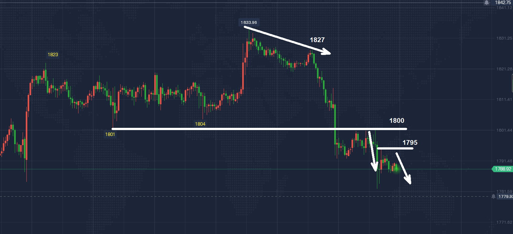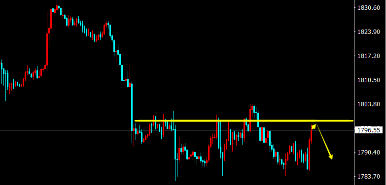在这个市场中,最公平的就是行情。所有的投资者面对的都是一样的行情。然而,面对同样的行情,投资者必然会做出不同的选择。当行情像浪花一样一波接一波的打过来,有的人面对机会,做好准备,迎面而上,止盈获利;有的人害怕恐惧,毫无准备,反而被行情杀了个措手不及。行情对每个人都是公平的,就看你怎么面对。若你是前者,我可帮你锦上添花;若你是后者,我可助你一臂之力。 行情回顾: 黄金 周三继续续跌,日内整体表现相对较小,反弹受阻而且力度受限,后市于1800附近形成下跌延续,最低触及1782附近!周三 现货黄金 延续跌势,美盘中扩大跌幅,下破1790美元/盎司,随后小幅回升至该关口附近,最终收跌0.26%,报1