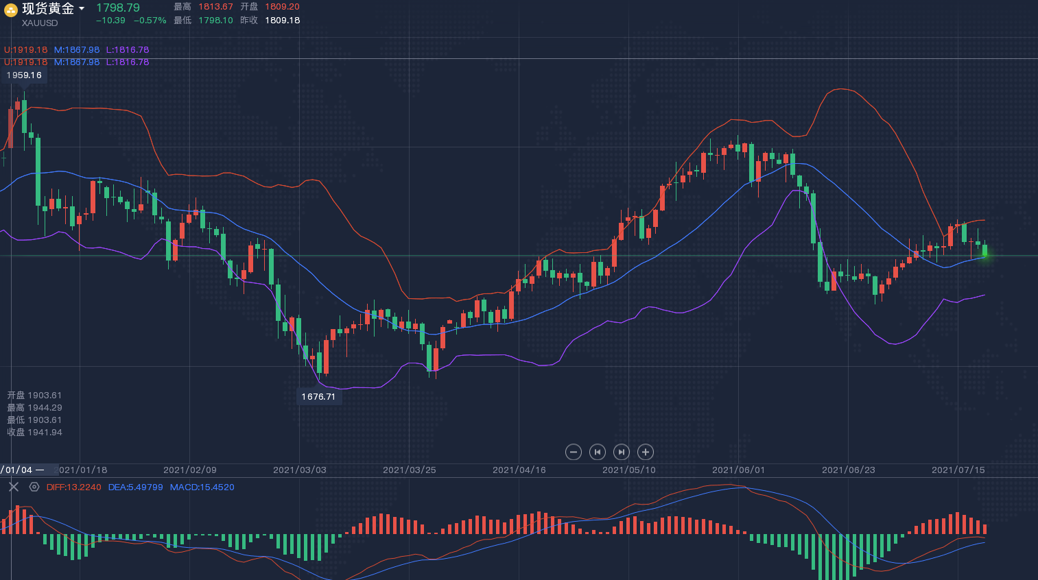 投资理财不是一朝一夕的事,前期的亏损,不代表后期的亏损;前期的获利,不代表后期的获利。所以,亏损的朋友不要气馁,获利的朋友不要自满,让自己以平和的心态理性的投资。想说的是如果你处在这样的循环中,请停下来好好想想,总结一下经验和教训,整装再发。如果你有缘结识我,因为你需要,刚好我专业,携手共创投资,为你的投资事业保驾护航! 黄金方面: 对于昨日来说,黄金开盘于1812一线,白盘处于小幅震荡当中,一直到晚间,黄金开始快速走高,最高处于1824一线,随后快速大跌,最低处于1804一线,小幅反弹后最终收盘于1810一线. 就当下的情况来说,并无太大的变化,虽然说变异新冠愈加严重,这刺激了一小部分的黄