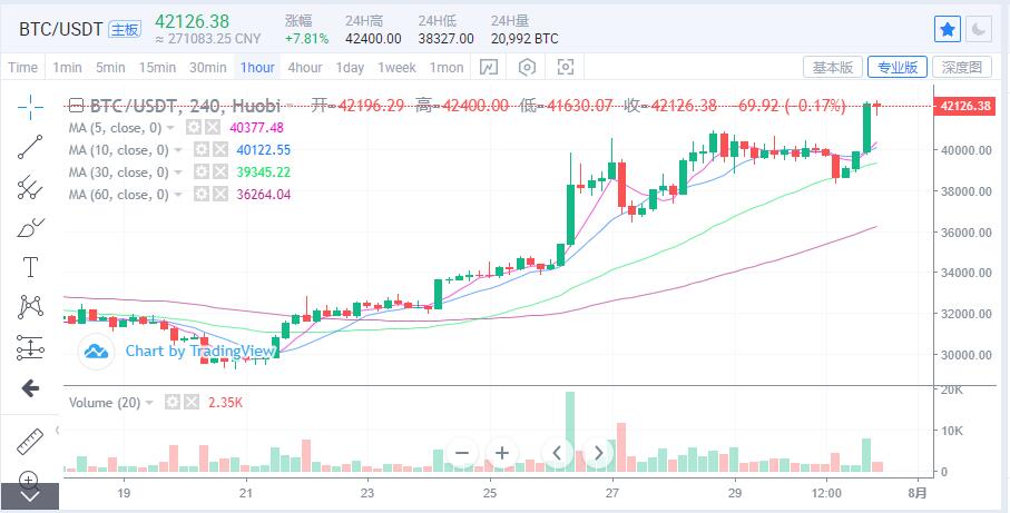 别总抱怨这个市场不好做赚不到钱,要怪就怪你局限了自己的思维,总以自己的思想为中心。为什么别人可以做的好,分析思路清晰明了,做单不急不慌,偶尔的损失也不会影响心态,这就是思维和格局的差别。还是那句话,相信我的人,我带着你赚。不信我的人,你看着我带别人赚。这是一个双赢的时代,你拿出诚意,我拿出实力和我的真心,共同实现我们投资的价值,从而去创造我们彼此憧憬的未来! BTC 比特币本周先抑后扬,经过几个交易日的小幅调整过后,币价重新站上4万点整数关口,对整个市场起到了一定的提振作用。 技术面来看,7月26日币价中阳线有效突破了日线级别ma60宣告了前期底部震荡行情的结束,由此也将开启新的一轮上涨行情