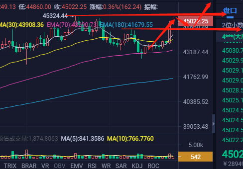 新的一周新的开始,别管前面做的怎么样,纠结在过去没有任何意义,把握好当下和未来才是投资朋友该考虑,人不能活在过去。上周市场整体一个持续上涨的趋势非常明显,不管是以太坊还是比特币都在不断刷新高点,比特币最高涨至45325一线,而以太坊就牛逼了,多日持续上涨不断刷新高点,最高升至3189的高点,最后周末市场走了一波调整。日线转阴让市场空头心思又活络了起来,各种见顶的言论不出预料的又会充满市场,这就是人心逐利的过程,也是追涨杀跌的典型。 咱们今天聊聊大趋势方向的走势,还是老话,一个趋势走出来之后并不会轻易改变,前面回调到位咱们开始干多的时候就开始不断强调,到现在行情走高最高甚至接近了一倍的涨幅,期