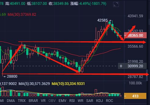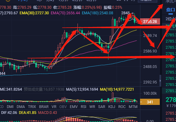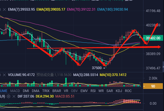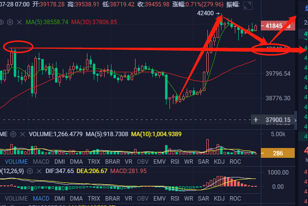 昨日市场再次走出大幅回调之后拉高的走势,走势和前面周三的如出一辙,技术面来说很明显的已经走出了回落企稳,但是行情吧并没有直接走高,反而在白天走出大幅回撤,看似凶狠的下跌一步步把一些散户给洗出局,晚间开始不断拉升走高,比特币再次突破了40000整数关口,以太坊强势依旧,再次刷新了新高最高涨至2845一线,技术面来看行情确实如期上涨了,但是又有多少人能抓住晚间的这波上涨就很难说了。所以说金融市场注定了是人性博弈的地方,哪怕是市场方向再明显的行情,总会出点幺蛾子去考验人心和定力,不断的挑战底线直到把不坚定者洗出局才会罢休,大浪淘沙留下的才是精华。 经过了前两天的上涨行情走出来,趋势已经愈发的明显重
