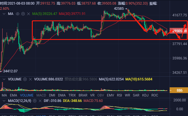 人生从来都没有一帆风顺,路途上的磕磕碰碰难以避免,始终稳步向前才会达到胜利的彼岸,行情亦是如此。比特币以太坊昨日整体趋势持续走弱,日内始终保持着震荡下跌且在不断试探下方新低。比特币最低跌至37600一线,初步打破前期的整理区间,日线级别的回调似乎还没结束。以太坊以结束多日连阳首次日线收阴线,初步看来还有进一步下跌去测试低点的可能,是否又重回熊市是目前大家比较关心的一个话题。 我们都知道前期的高位大幅下挫之后,不管是以太坊还是比特币自高位到前期的低点位置都超过了一半的跌幅,好不容易走出多日持续上涨的一波小牛市却又在近期开始转向,所以担心也好理解。但就目前来看还是健康向上运行的,比特币的前期高点