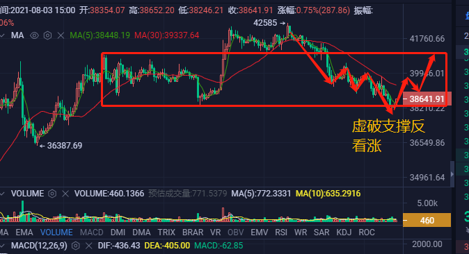 白天的行情走势或许对于多头不是那么友好,比特币和以太纷纷走出快速下跌测试支撑的走势,其中比特币一度跌破38000关口,以太坊稍微强一点但也最低跌至2444后开始反弹,这种下跌走出来很容易让人慌神,甚至点位做的差的估计吓得够呛,所以说我们多次强调等回踩到支撑位置去多,现在看来是否合理?最近发现有朋友交易很久依然弄不清市场的本质,总是在实际操作中舍本逐末,什么吃回调、吃超卖超买等各种短跑,老刘有必要对趋势的本质做个具体的分析了,以敲醒那些因为贪吃而被深套的迷途羔羊。现在市场疑惑最多的还是行情是否转向了,毕竟日线来看比特币多日连续收阴,而以太又是持续多日收阳,看似完全没有同步的意思。 不纠结,从技