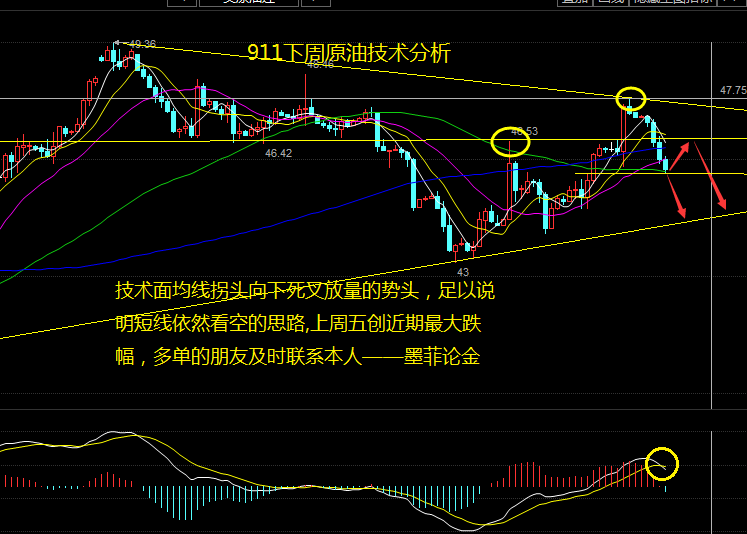原油下周走势分析及多单解套策略 技术面而言周线仍然收阳,足以说明多头依然还未走完,我们结合短线60分钟k线走势来看,连续几个交易日的涨势促使油价探顶,但周五的断崖式下跌将其收复,均线指标死叉放量,k线沿动力均线向下延伸,触及60分钟120均线,240分钟60均线支撑止跌,至收官日价格短线反弹修正,不过这样的反弹,