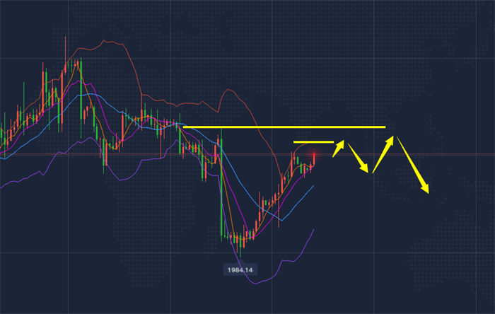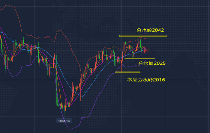 现货黄金: 黄金日线结构连续收阴,上半周并未延续强势上涨,而是以两日的震荡来消化和确认上周五阳线的有效性,同时也巩固了下方均线带支撑的作用。不过黄金整体状态也还是倾向于横盘的,如果仅凭技术力量来上涨,上方未必会有太大的空间拓展,同时也会需要太多的时间成本,所以黄金想要走出波段级别的上涨趋势,更期待基本面带来利好刺激。从日线形态上来看,本周价格并没有过前期高点2042,日内暂时行情震荡中,同时分水岭比较清晰,但价格高低空间不大。 当前盘面来看,4小时结构图一波三连阴从2040高点处受压至中轨之下,今日开盘在中轨下方。结构上伴随了探高回落收低,今日短线可能先向下轨回落寻求支撑,当然节奏还是震荡式