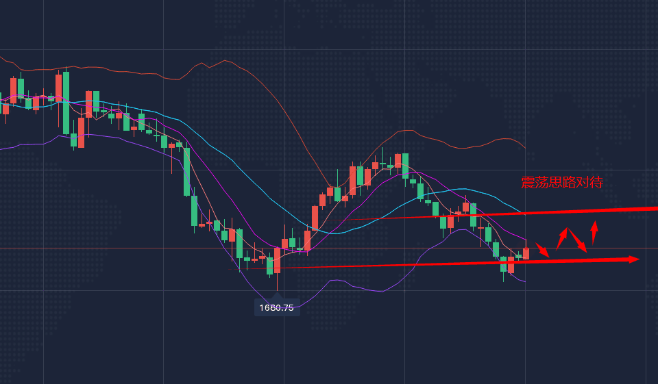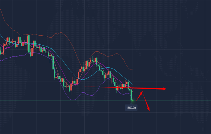 黄金行情走势分析: 北京时间周五(9月16日)亚市早盘,美元指数交投于109.70附近;美元指数周四微涨,美元兑日元小幅走高,数据显示美国8月零售销售意外反弹,但分析认为数据总体上是有些疲软的,瑞郎兑欧元创下2015年以来最高;金价回落近2%,至2020年4月以来的最低水平,美联储再次大幅加息的押注削弱了黄金的吸引力;原油下跌超4%,受累于达成了避免美国铁路罢工的临时协议,对全球需求疲软的预期,以及在可能的大规模加息前美元持续走强。 从盘面来看,黄金昨日底部放量破低,久盘之后借助消息面刺激破位近期低点防守,失守1680之后形成了短暂加速下行。且日线收在低位,收成一根大阴K线,日线破低收低,隔