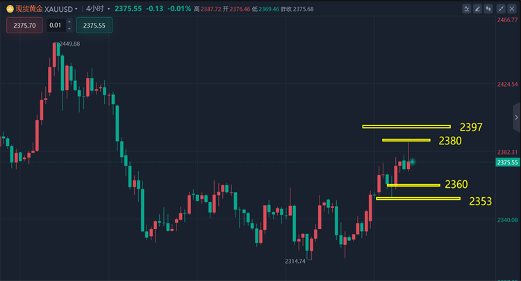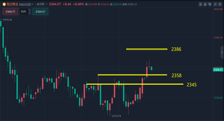 即使现状多么不堪,但是请你记住,没有一条路走到黑的行情,更没有一直亏损的投资,行情反反复复,操作亏亏赚赚,没人赚的彻底,都是摸滚打爬,稳稳当当,步步为营的结果。在这个良莠不齐的市场,亏损的人不少,但是或多或少都存在交易中的大问题,无论是心态不好,还是犹豫不决,还是不带止损,或者说喜欢抗单,锁仓,亏损不是偶然,总会有大问题存在,做投资不是一朝一夕,唯有摒弃这些坏毛病,孜孜不倦的学习,掌控风险,稳健操作,才是你涅槃重生的时候。 黄金: 技术面上来看,现货黄金日线结构收一根阳柱,随着金价不断走高,K形已经形成非常明显的且有力的支撑,这说明了多头偏强,其中要以日线布林带中轨2360,而一旦今日金价能