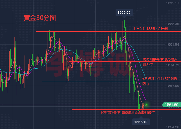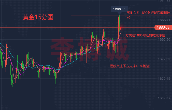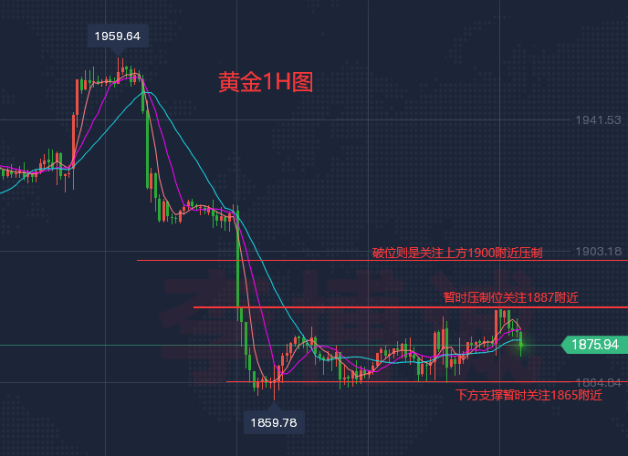 【今日后市重点关注数据】 今日重点关注的财经数据与事件:2023年2月8日 周三 ① 22:15 美联储威廉姆斯接受媒体采访 ② 22:30 美联储理事丽莎·库克出席讨论会 ③ 23:00 美国12月批发销售月率 ④ 23:00 美联储巴尔和博斯蒂克发表讲话 ⑤ 23:30 美国至2月3日当周EIA原油库存 ⑥ 23:30 美国至2月3日当周EIA战略石油储备库存 ⑦ 次日01:30 美联储卡什卡利发表讲话 ⑧ 次日02:45 美联储理事沃勒发表讲话 【黄金行情解析】 昨日黄金上涨最高1885附近回落,最低到1864区域,收盘1872附近,那么今日行情就是依然震荡寻求方向,很显然破位昨日高低