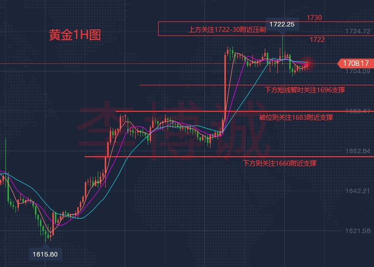 【市场数据解读】 昨天黄金收月线,连续7连阴,表面空头仍在主导市场,在美联储激进加息预期没有明显转变之前,黄金多空都存在交易机会。而本周看点在于美联储利率决议以及非农报告。如果利率决议能够窥探出美联储内部分歧严重,那么激进加息预期会降温,黄金有望冲高,要不然黄金反弹依旧乏力;另外关注劳动力市场,如果就业有疲软迹象,美联储激进加息的预期也将受到压制。这些都可能是美联储转向的契机。在决议之前,维持震荡格局即可,高抛低吸都有机会,可以留意加息预期变化以及美债收益率对黄金的影响。 有“新美联储通讯社”之称的著名记者Nick Timiraos周一表示,为了使通胀降温,美联储的利率终值可能会超过预期,并