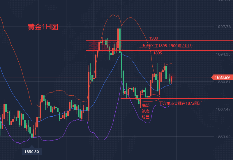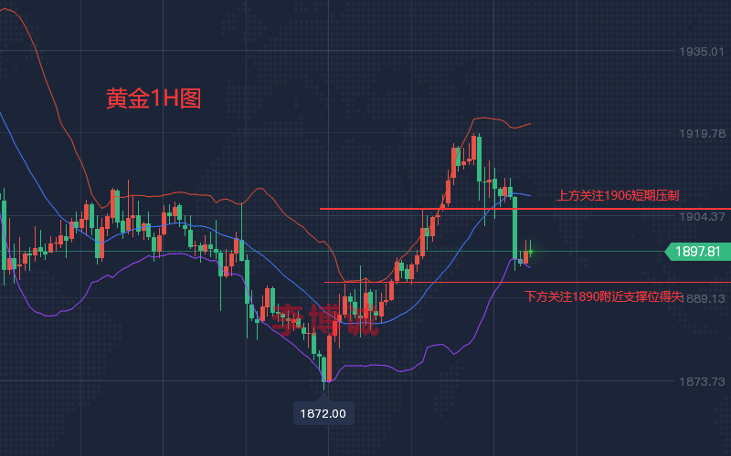 【市场盘点】 周四(5月5日)进入欧市盘中,由于缓解市场对大规模加息的担忧,令投资者松了一口气,股市应声走高。美元在上一交易日大跌后反弹,现货黄金维持升势,一度冲高至1900美元上方,市场接下来关注明日的美国非农就业报告。 周四欧市盘中,现货黄金维持升势,目前交投在1895美元附近,此前一度冲高至1903水平,为4月29日以来的最高水平。较日低涨超20美元。金价周四一度上涨逾1%,此前美联储主席鲍威尔(Jerome Powell)排除了今年大幅加息的可能性,因为美联储希望在不引发经济衰退的情况下遏制通胀。 加息往往会提高债券收益率,并通过提高零收益黄金的机会成本而降低其吸引力。黄金也被视为通