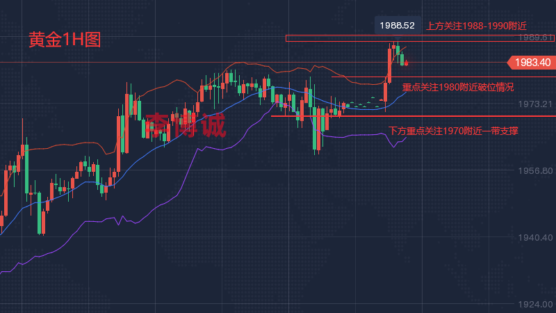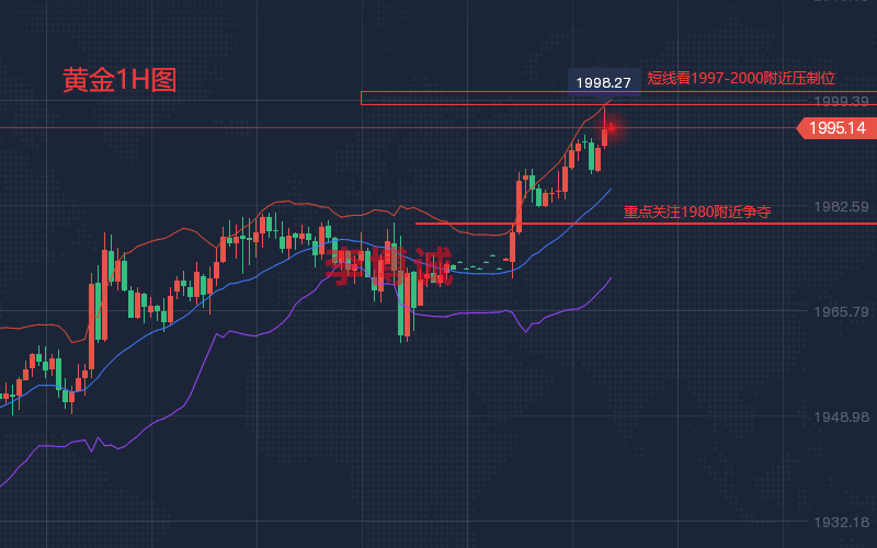【市场资讯】 周一(4月18日)欧市盘中,欧洲多数市场因复活节假期休市,市场交投清淡,现货黄金维持升势,目前交投在1990美元上方,距离2000关口仅咫尺之遥。围绕俄罗斯和乌克兰冲突的不确定性抑制了风险情绪,促使投资者转向黄金避险。 周一欧市盘中,贵金属盘中一度上涨近20美元,涨幅接近1%,最高触及1993美元附近,为3月11日以来的盘中最高水平,此前连续两周上涨。金价升至五周高位,因欧洲战争、通胀上升及美国经济衰退风险提振对避险资产的需求。 乌克兰官员表示,马里乌波尔剩余的守军被俄罗斯军队包围,但他们还没有交出这个具有重要战略意义的港口城市。据报道,靠近波兰边境的利沃夫发生了致命袭击。几个